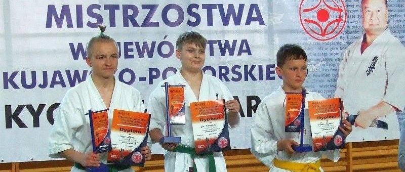W sobotę 13 maja w Bydgoszczy odbyły się Mistrzostwa Juniorów Województwa Kujawsko-Pomorskiego PFKK. Zawody zorganizowała Bydgoska Szkoła Kyokushin Karate. W turnieju wzięło udział 141 zawodników z klubów województwa Kujawsko-Pomorskiego zrzeszonych w Polskiej Federacji Kyokushin Karate z Bydgoszczy, Chełmna, Chełmży, Golubia-Dobrzynia, Solca Kujawskiego, Świecia, Torunia, Wąbrzeźna oraz z Gdańska i Bydgoskiego Klubu Sztuk Walki. W skład naszej reprezentacji klubu weszło 29 zawodników ćwiczących w sekcjach w Bydgoszczy i Białych Błotach. W klasyfikacji drużynowej kata + kumite nasz klub, Bydgoska Szkoła Kyokushin Karate, zajął III miejsce.