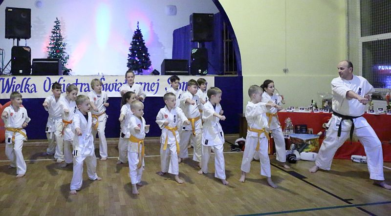 W niedzielę 13.01.2019 większość ćwiczących w sekcji Trzemiętowo z Bydgoskiej Szkoły Kyokushin Karate uczestniczyła w finale WOŚP organizowanym przez Gminę Sicienko. Podczas pokazu zaprezentowaliśmy techniki kihon-geiko oraz ido-geiko. Następnie kata: Taikyoku I i III oraz Sokugitaikyoku I. Ostatnim akcentem naszego pokazu były walki, w których udział wzięli zarówno najmłodsi jak i starsi ćwiczący w naszej sekcji. Wzbudził on najwięcej emocji. Nasi podopieczni zebrali oklaski oraz pochwały ze strony zebranych uczestników finału. Pokaz prowadził Andrzej Wnęk instruktor BSKK.