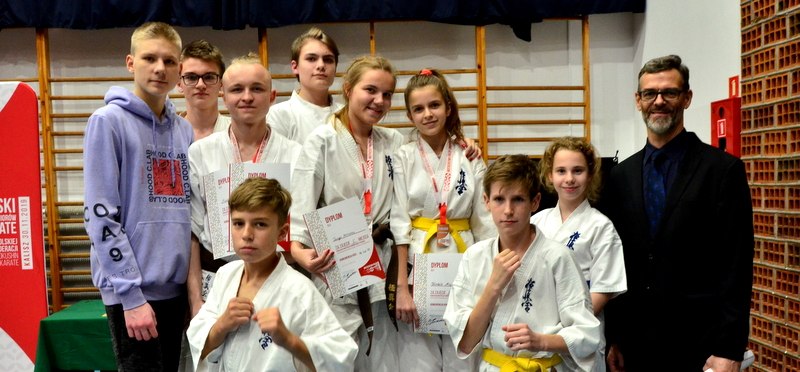W ostatnią sobotę listopada – 30.11.2019r. w Hali OSiR w Kaliszu odbyły się XV Mistrzostwa Polski Juniorów w Karate do lat 18, które rozgrywane są w ramach Polskiej Federacji Kyokushin Karate. W zawodach wzięło udział 205 zawodników z 33 klubów z PFKK i innych organizacjach karate full – contact w całym kraju. Impreza została zorganizowana przez Kaliski Klub Kyokushin-kan Karate David Club kierowany przez sensei Tomasza Jeżyka 2dan. W XV Mistrzostwach wzięła udział drużyna składająca się z 9 osób ćwiczących w Bydgoskiej Szkole Kyokushin Karate. Czterech zawodników wystartowało w konkurencji kata, natomiast sześciu stanęło na macie by sprawdzić swoje umiejętności w konkurencji kumite.