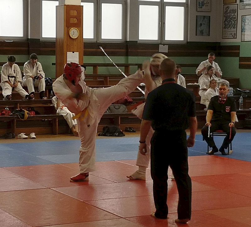 Trójkę naszych zawodników wspierała Beata Materek, która pełniła rolę sekundanta. Walki sędziował między innymi Robert Dudek. Shihan Wilento tym razem mógł swobodnie przypatrywać się zmaganiom zawodników. Po turnieju na gorąco wraz z zawodnikami przeanalizowali cały turniej…