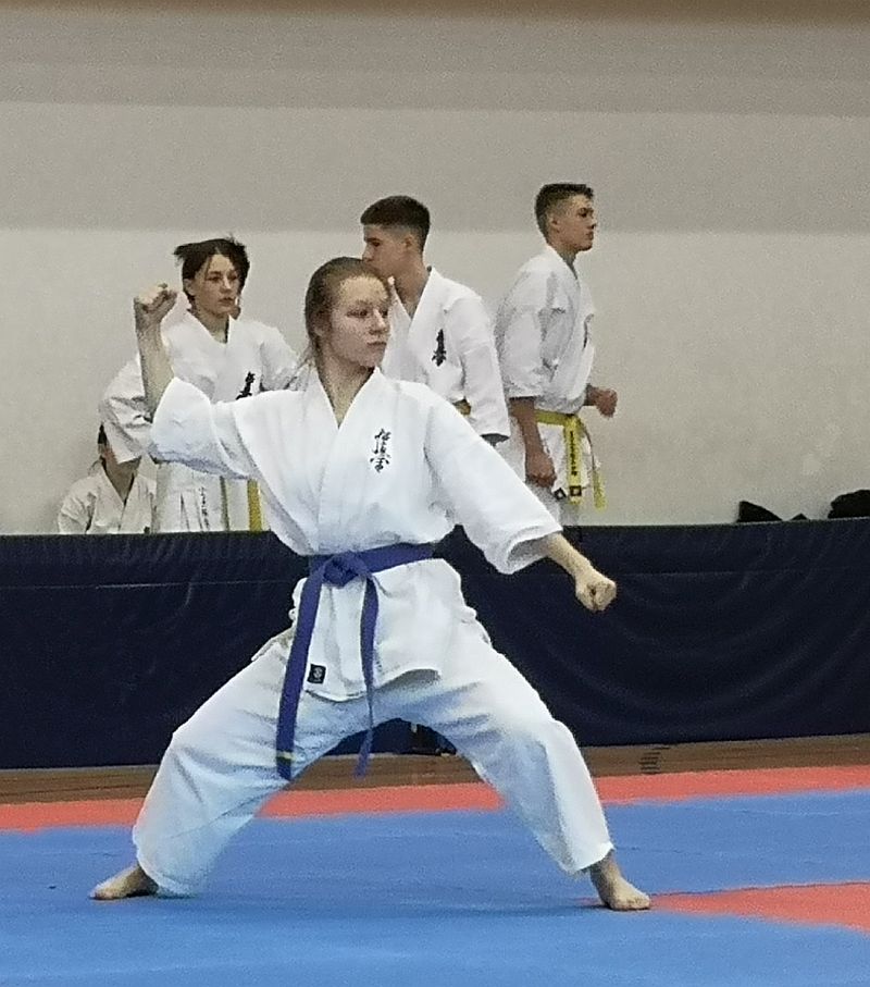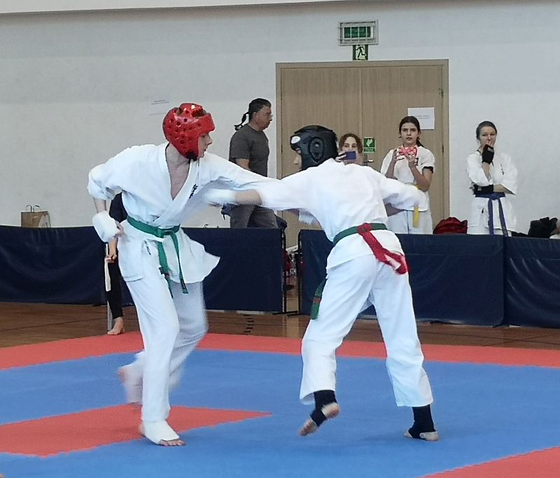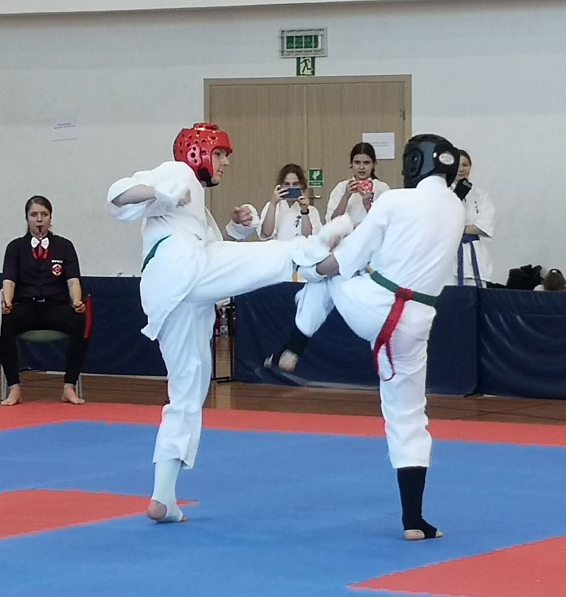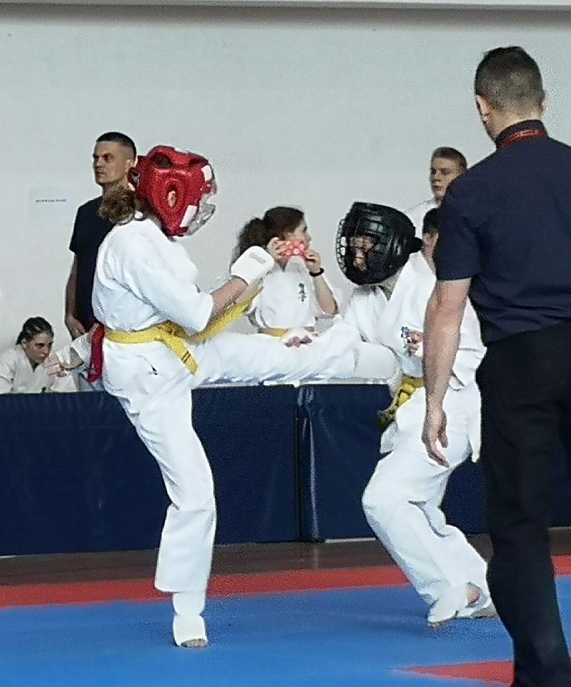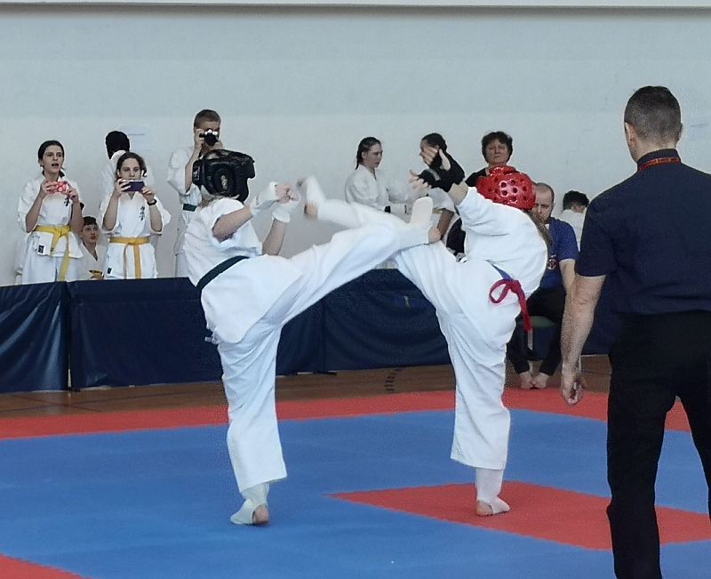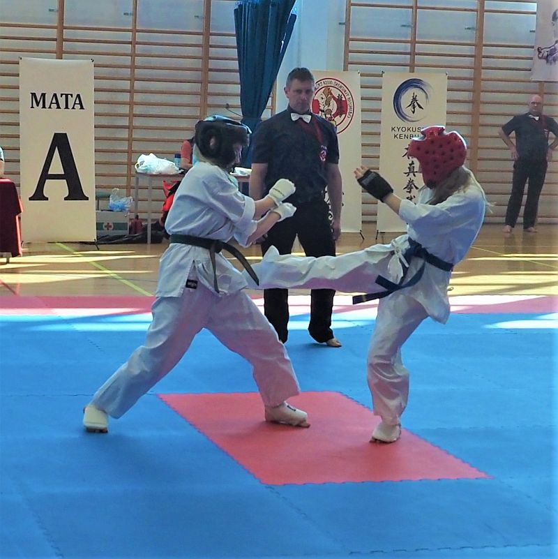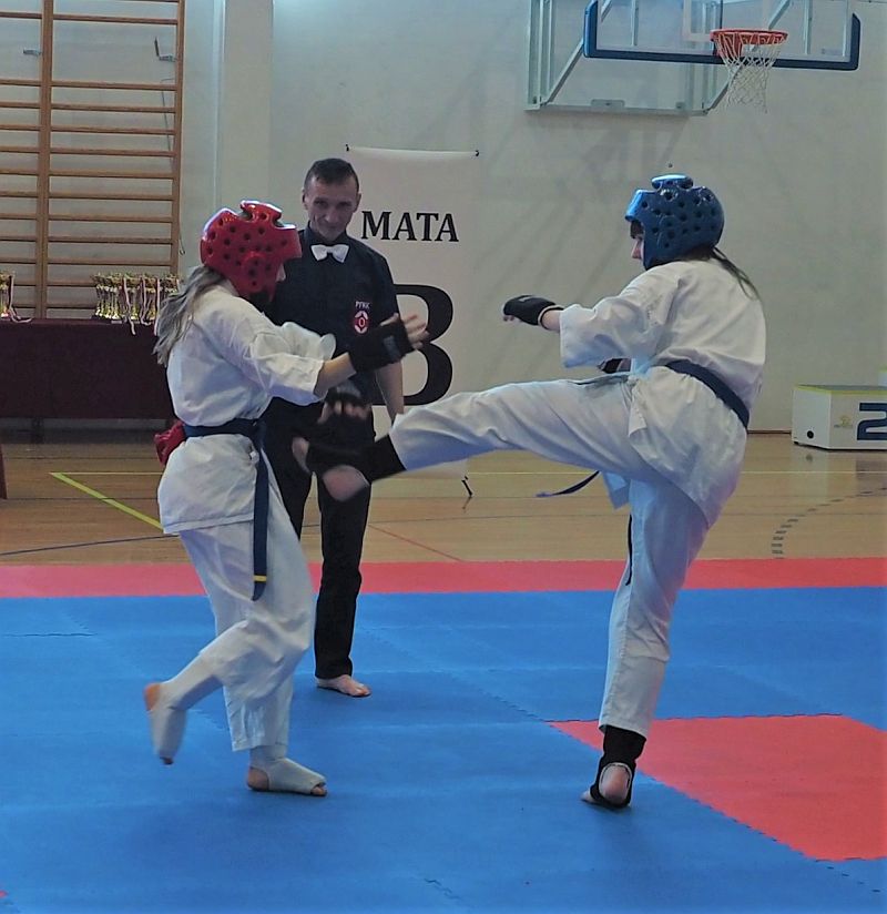 W kumite walczyło trzech naszych zawodników. Maja Kirdzik po wyczerpujących pojedynkach zajęła III miejsce -50kg 13-14lat. Gracjan Materek zmierzył się z zawodnikiem z Lubszy w pojedynku meczowym. Niestety obie rundy przegrał zajmując II miejsce w kategorii open 15-16lat. W najstarszej kategorii 17-18 open dziewcząt walczyła Pola Rzeźnikowska, która stoczyła dwa dobre pojedynki ostatecznie zajmując III miejsce. Gratulacje dla zawodników za dobra postawę i atmosferę podczas wyjazdu.