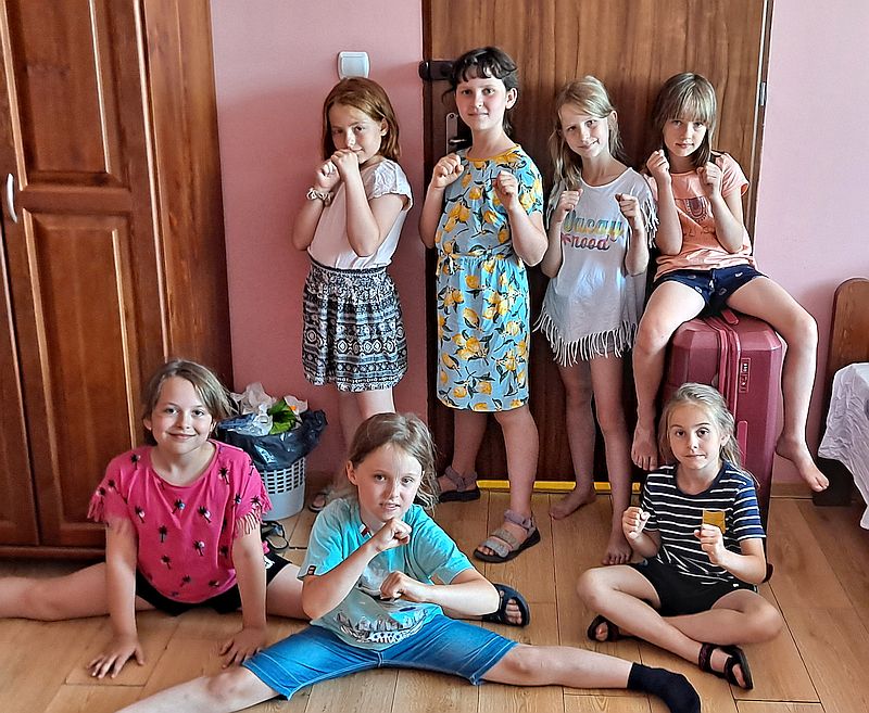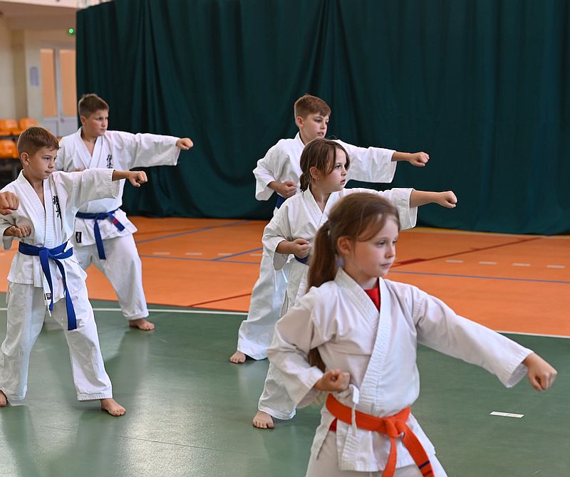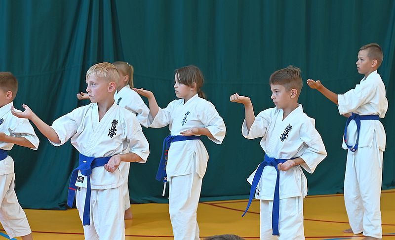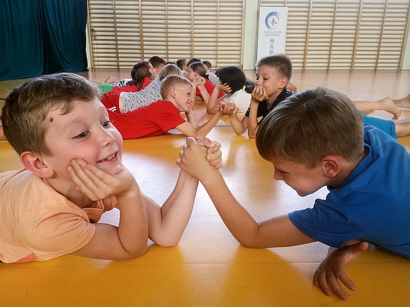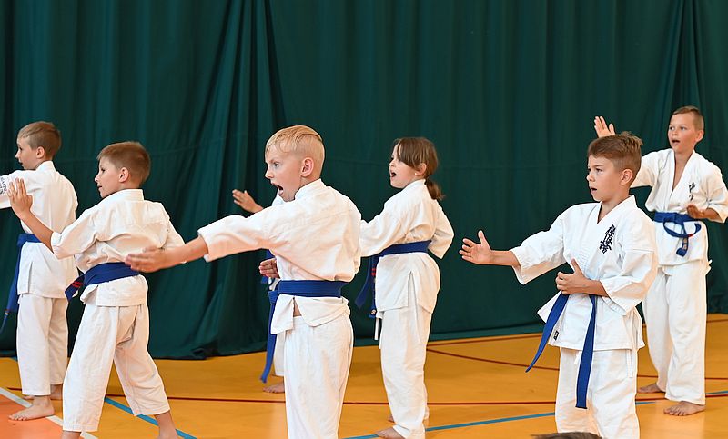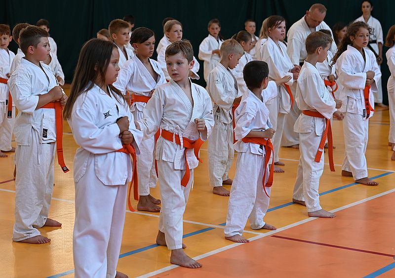 Podsumowaniem obozu był egzamin na stopnie szkoleniowe kyu junior. Większość uczestników przystąpiła do testu na pomarańczowe i niebieskie pasy. Cała szóstka naszych podopiecznych zdała na swoje kolejne stopnie – gratulacje!