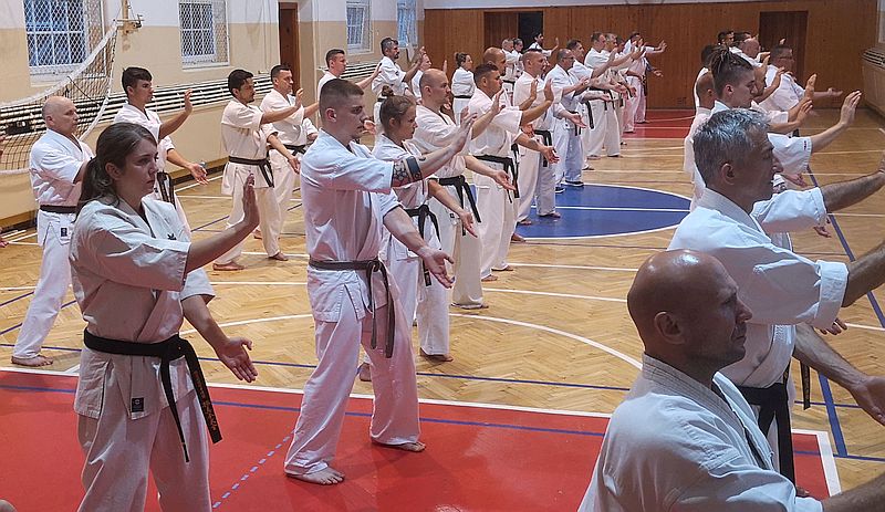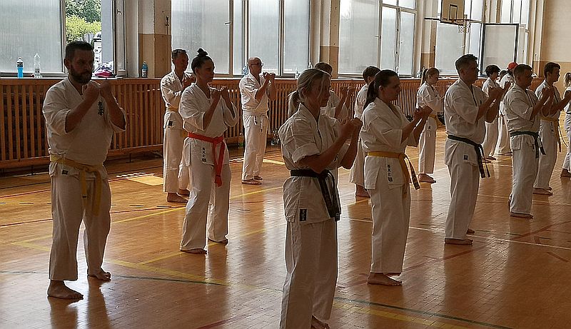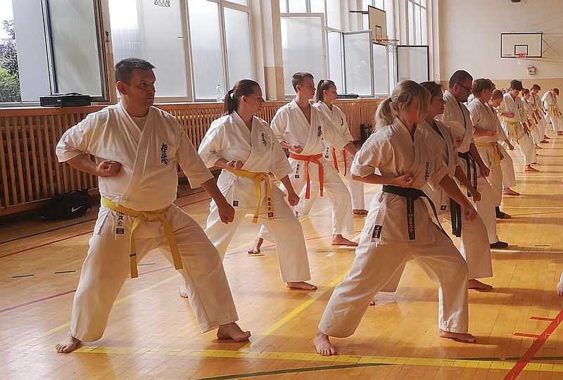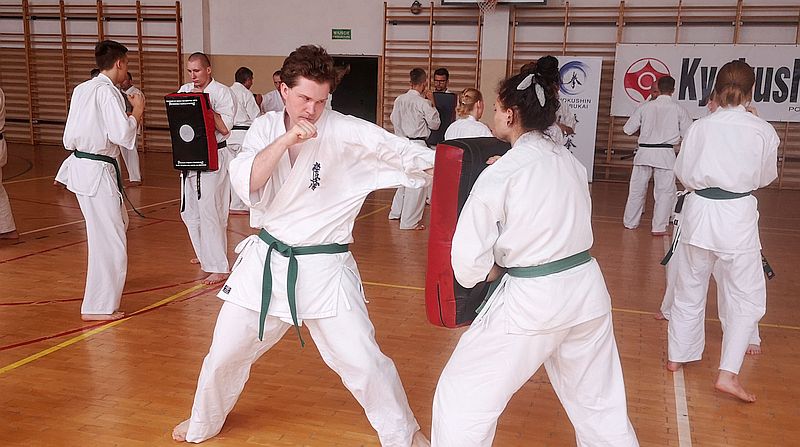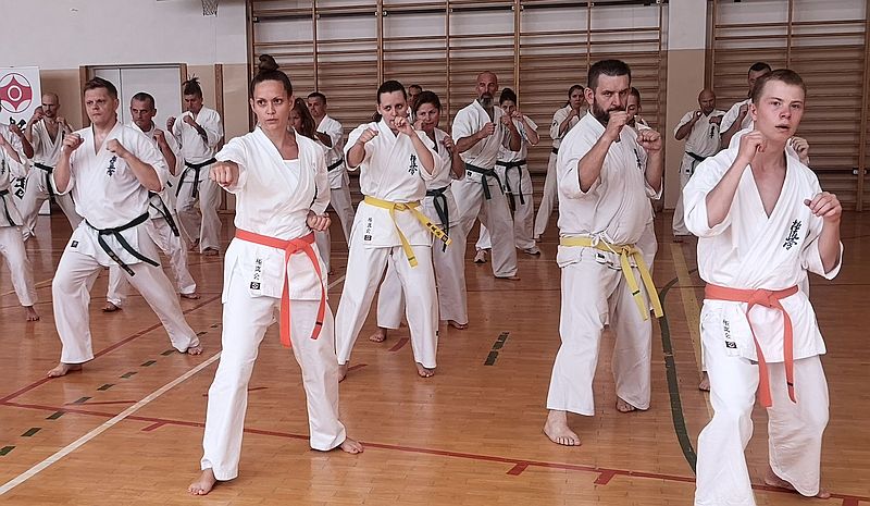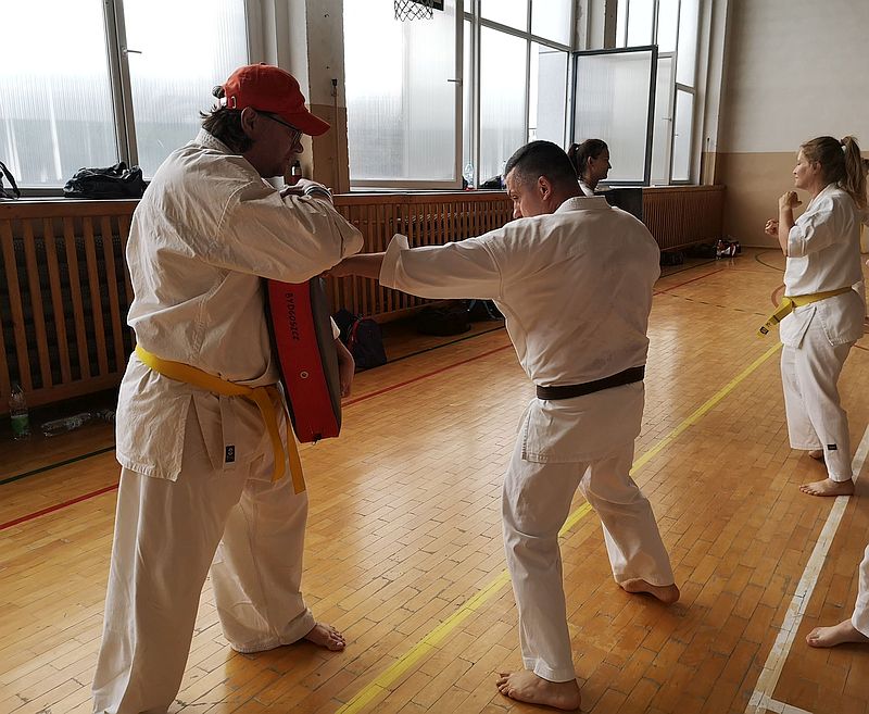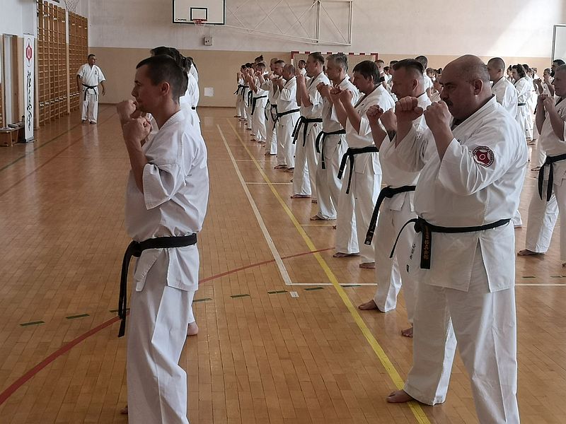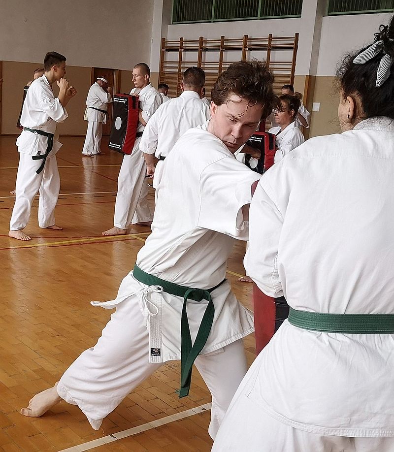 Shihan Jeremicz prowadził zajęcia z elementami Iken oraz wnikliwie tłumaczył podstawy techniki karate i kata oddechowych Sanchin i Tensho.