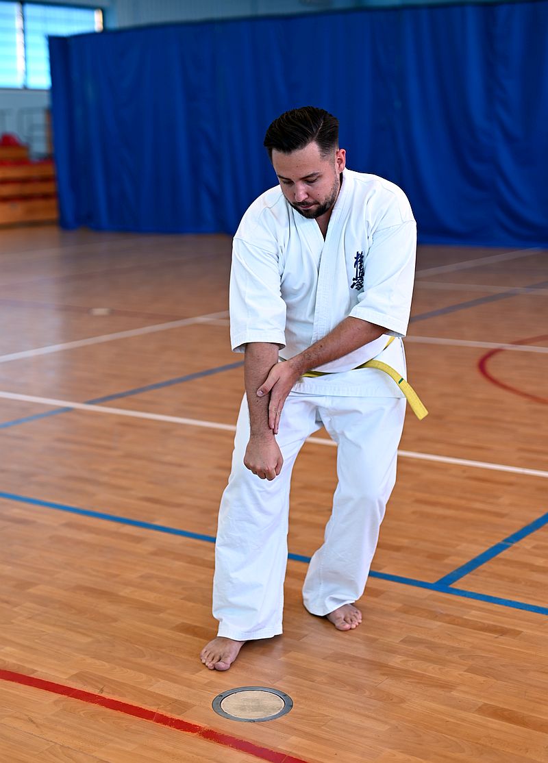 Pierwszy dzień szkolenia poświęcony był szkoleniu czarnych pasów i kata Sushiho. Wszyscy nasi uczestnicy z klubu brali udział w szkoleniu w sobotę i niedzielę. W trakcie zajęć przećwiczono kata Sanchin, Saiha, Seienchin i Seipai. Było to duże wyzwanie ale i motywacja do poznania tych zaawansowanych form kata.