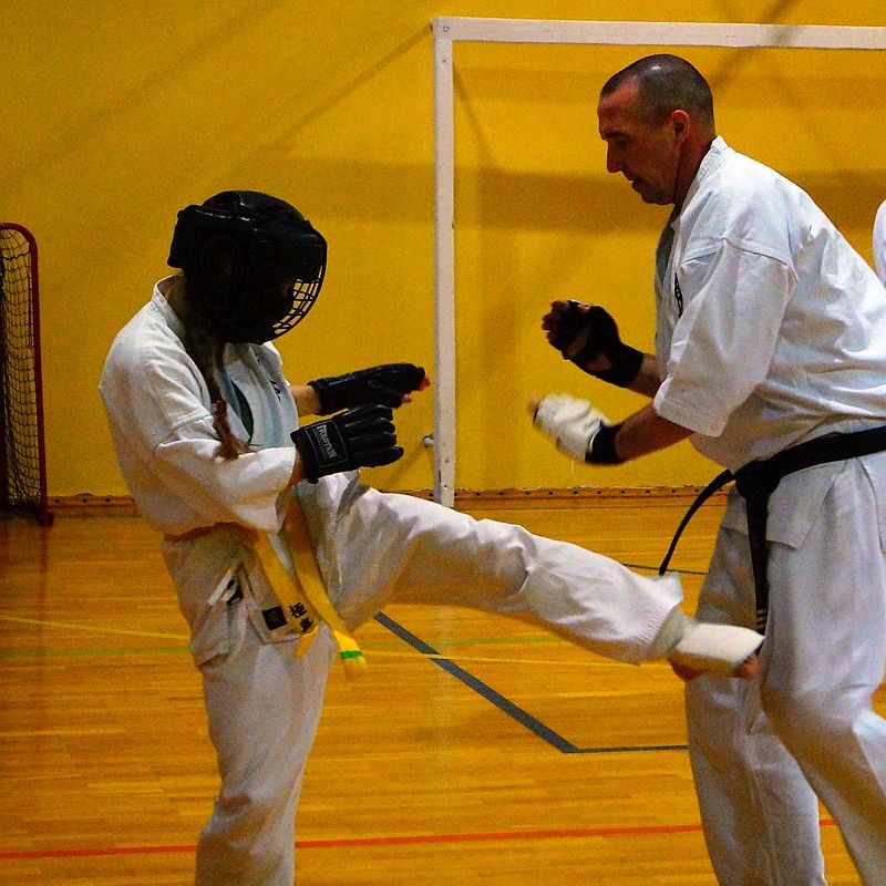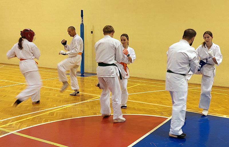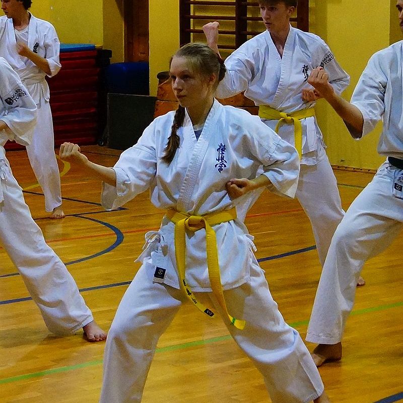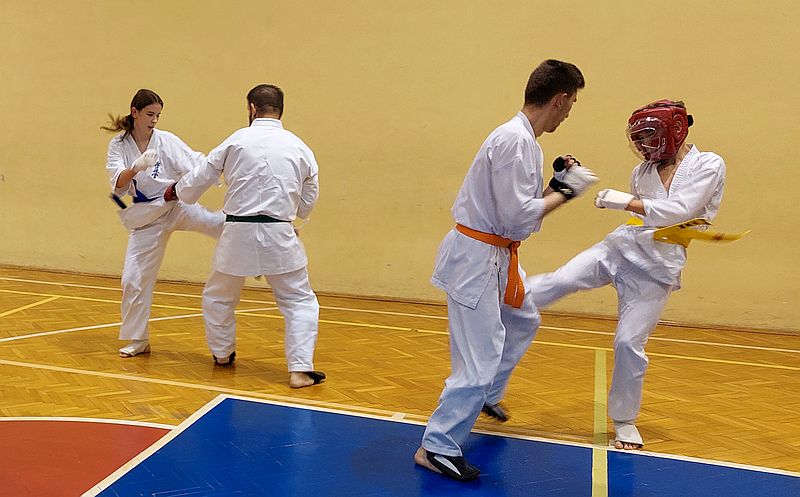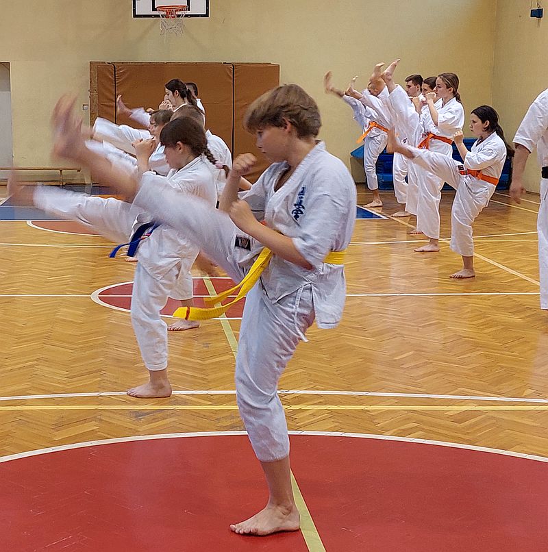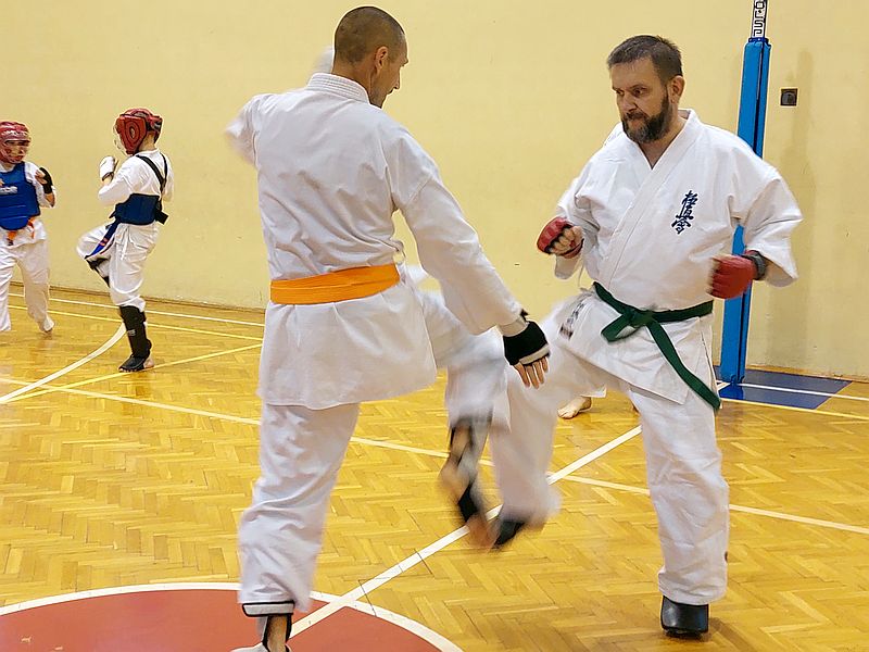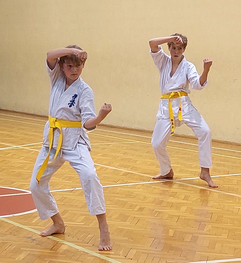 W drugiej grupie do egzaminu stanęli dorośli i młodzież na wyższe stopnie kyu. Zakres techniczny i tempo egzaminu było znacznie większe. Zdający na niebieskie i żółte pasy dodatkowo prezentowali kata i przeszli test kumite…