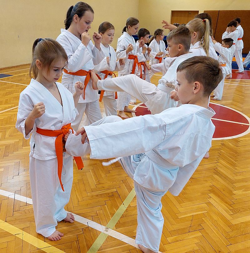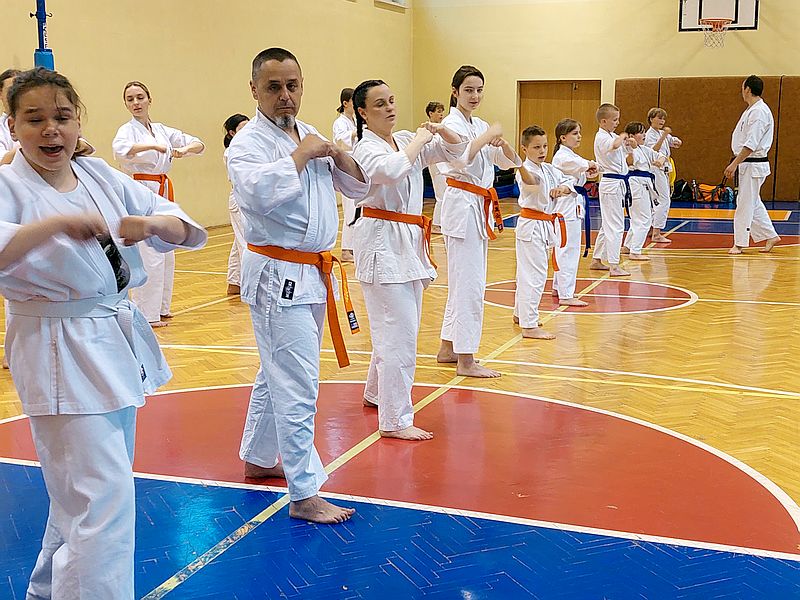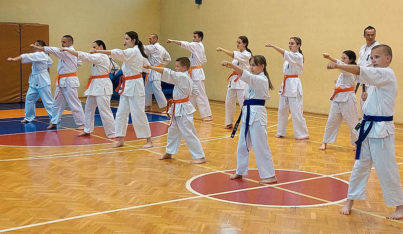24 maja w naszym klubie odbył się egzamin na stopnie szkoleniowe kyu w dwóch grupach. Najpierw do testu podeszli najmłodsi zdający na pomarańczowe pasy. Oceniano sprawność fizyczną i podstawową technikę karate.