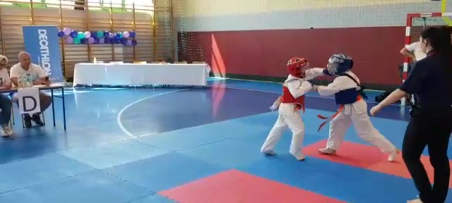 Najmłodsi zawodnicy walczyli w ochraniaczach, kaskach i ochraniaczach korpusu, dlatego walki były całkowicie bezpieczne. Wszystkim startującym towarzyszyły emocje, a jeszcze większe rodzicom 🙂
