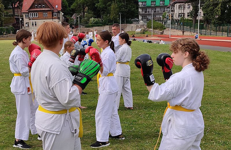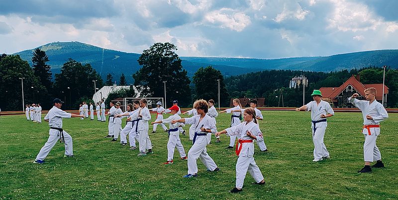 Treningi odbywały się głównie na stadionie i sali ośrodka sportowego, w którym gościliśmy. Piękna panorama Karkonoszy i Gór Izerskich dodatkowo mobilizowała do ćwiczeń. Podczas zajęć instruktorzy skupiali się na dokładnym i precyzyjnym wykonaniu zadań. Zakres ćwiczeń obejmował różne aspekty karate i sztuk walki od ćwiczeń podstawowej techniki przez kata, kumite, trening z kijem bo i samoobronę.