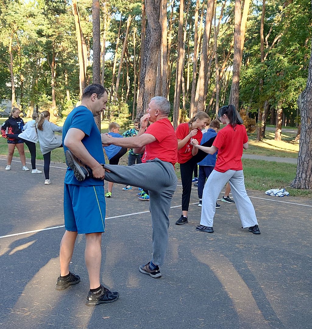 Sobota dostarczyła nam najwięcej wrażeń. Piękny poranek przywitaliśmy rozruchem w Parku Sosnowym. Po śniadaniu trening w hali sportowej OSiR nastawiony głównie na wykorzystanie kopnięć w walce. Po obiedzie spacer szlakiem ku tężnią i kolorowych dywanów kwiatowych. Wycieczkę zakończyliśmy w pięknym Parku Zdrojowym.