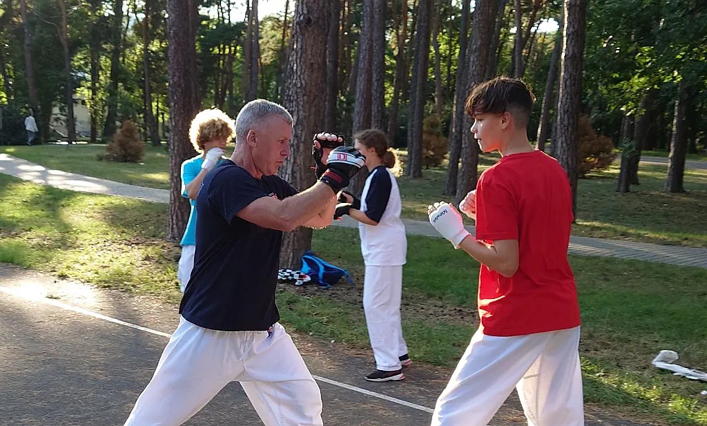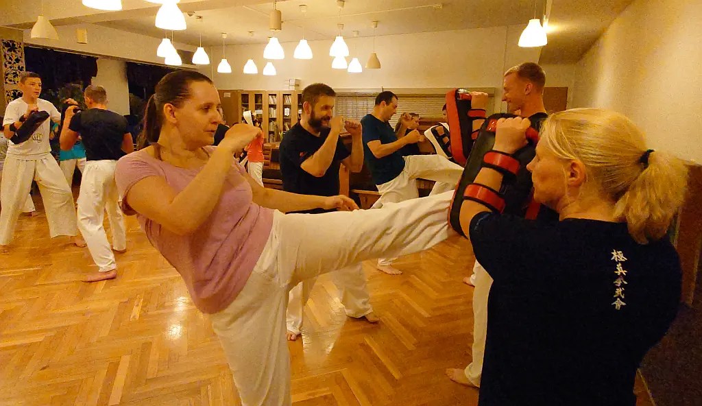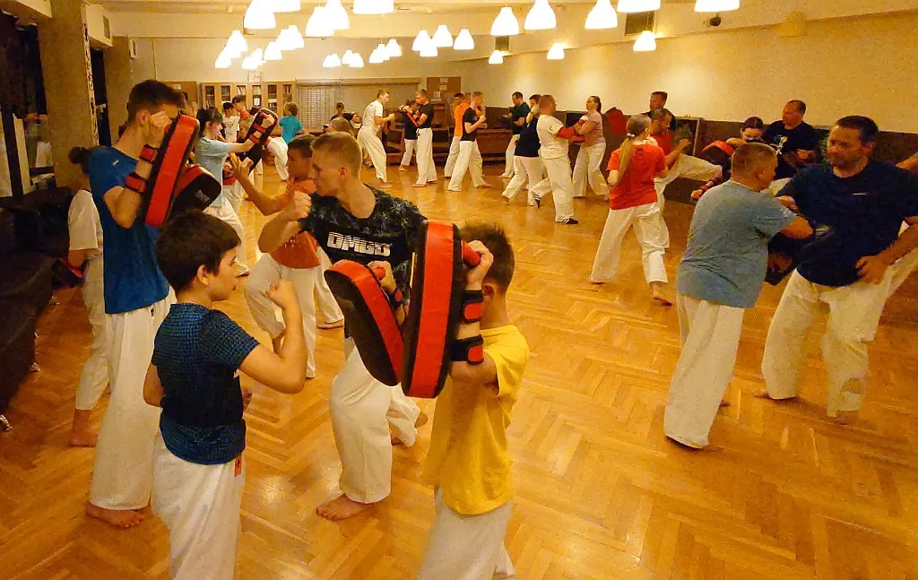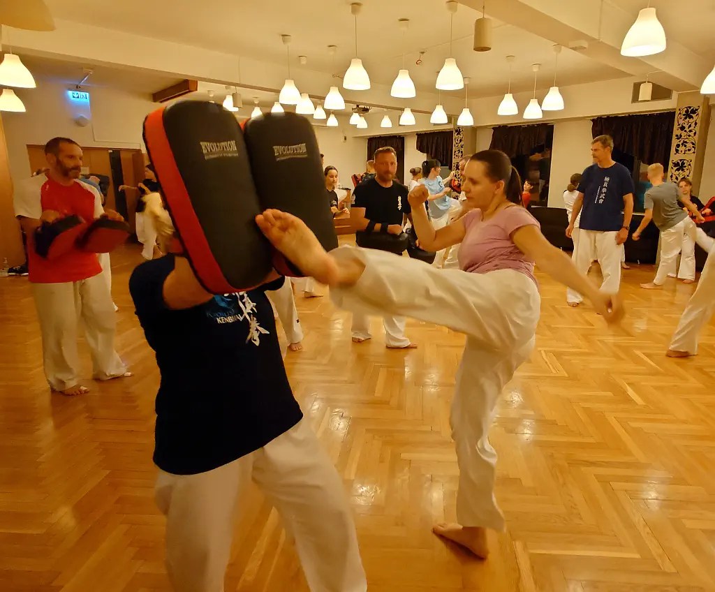 Zajęcia prowadził shihan Artur Wilento 5dan. Enter Camp zaczęliśmy od wieczornego treningu w świetlicy – dojo 😉 Potem kąpiel regeneracyjna w solance i dobry sen.