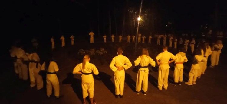 Na trening mocno-nocny każdy czekał z niecierpliwością. Dokładnie o północy w ciszy poszliśmy trening. Najpierw ćwiczenia w parku, a na koniec poszukiwania sprytnie schowanego sensei Michała – zakończone sukcesem 🙂