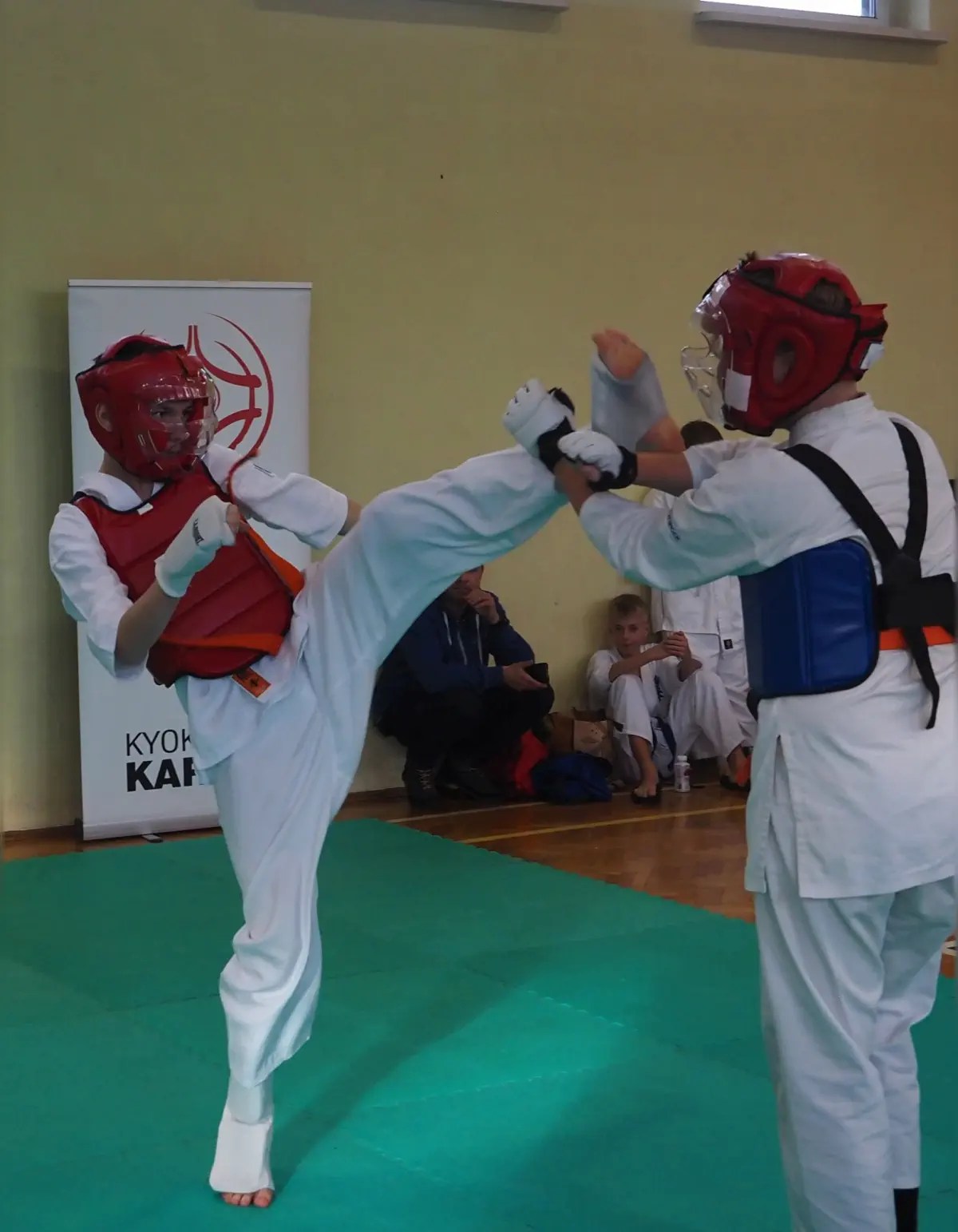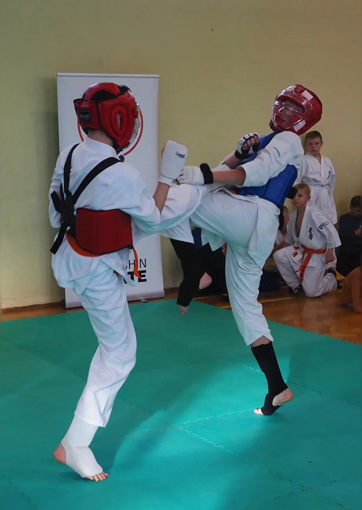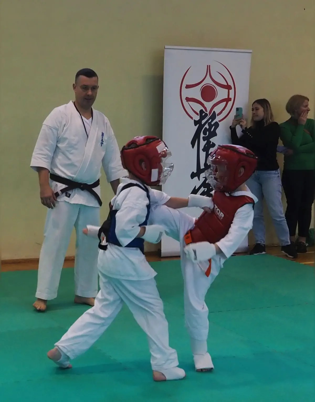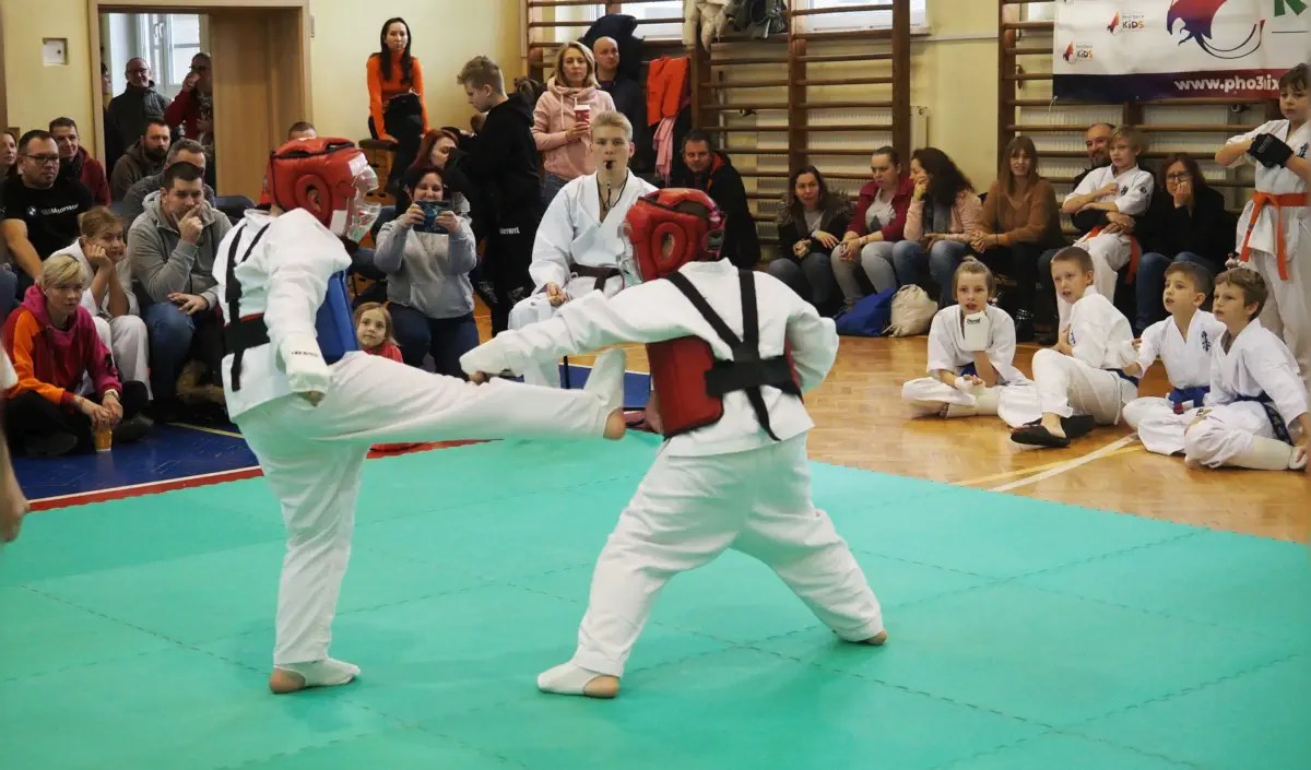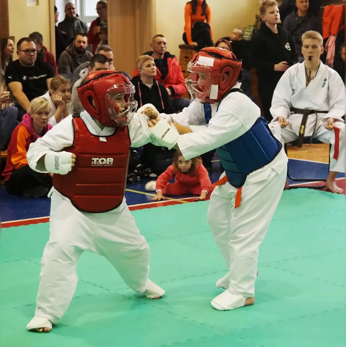 25 listopada 2023 zorganizowaliśmy Turniej Dwóch Miast. Na dwóch matach w ZS-32 przy ul. Kruczej 5a zameldowali się zawodnicy z sekcji dwóch klubów z Torunia i gospodarzy z Bydgoszczy. Zabrzmiało to wszystko bardzo poważnie, ale impreza miała charakter integracyjny. Najmłodsi ćwiczący, którzy chcieli spróbować swoich sił w kumite na zasadach turniejowych, mieli okazję to zrobić pierwszy raz właśnie tu. Była to również świetna gratka dla rodziców obserwujących umiejętności swoich pociech 🙂