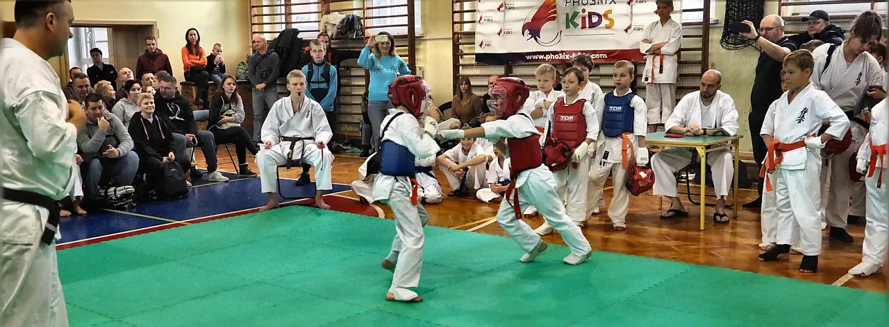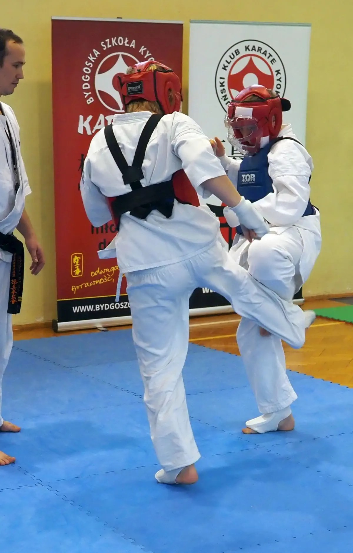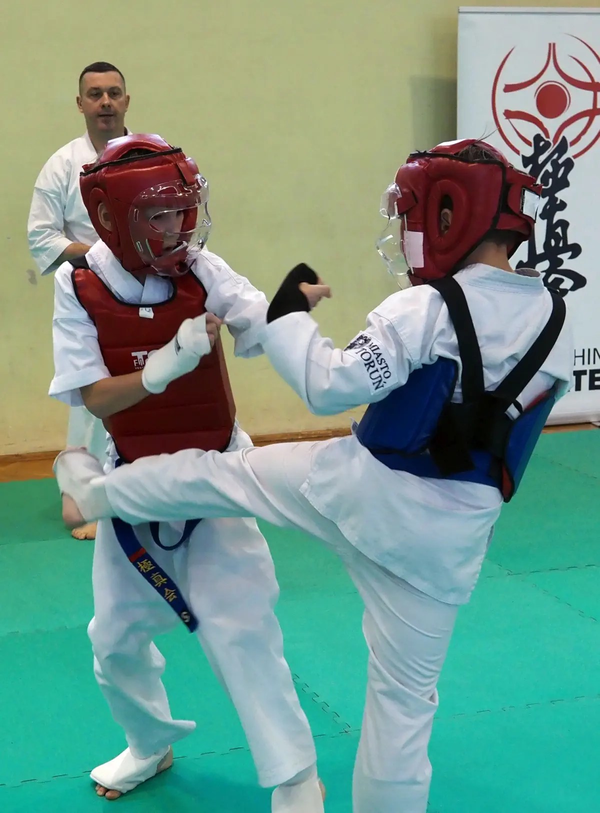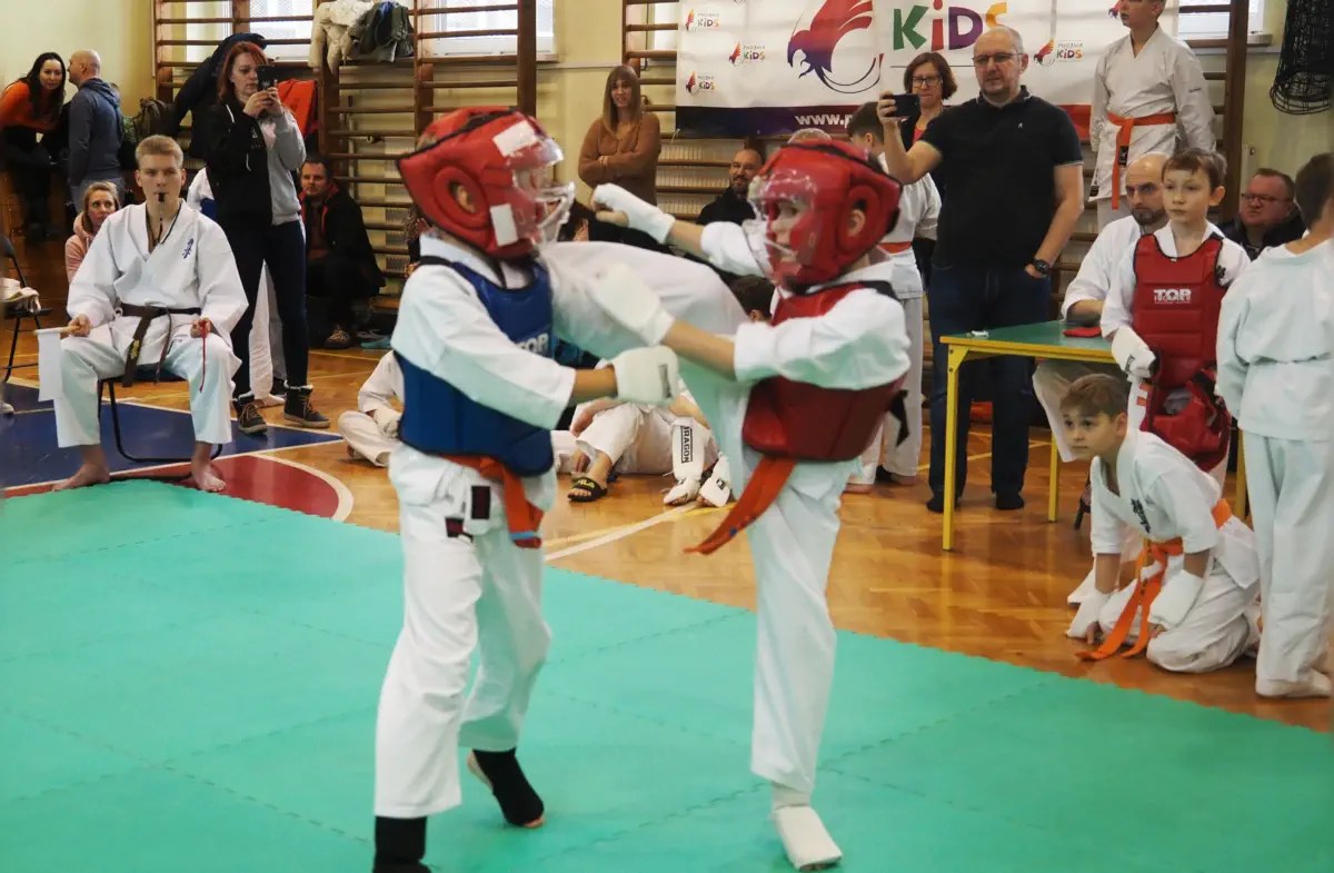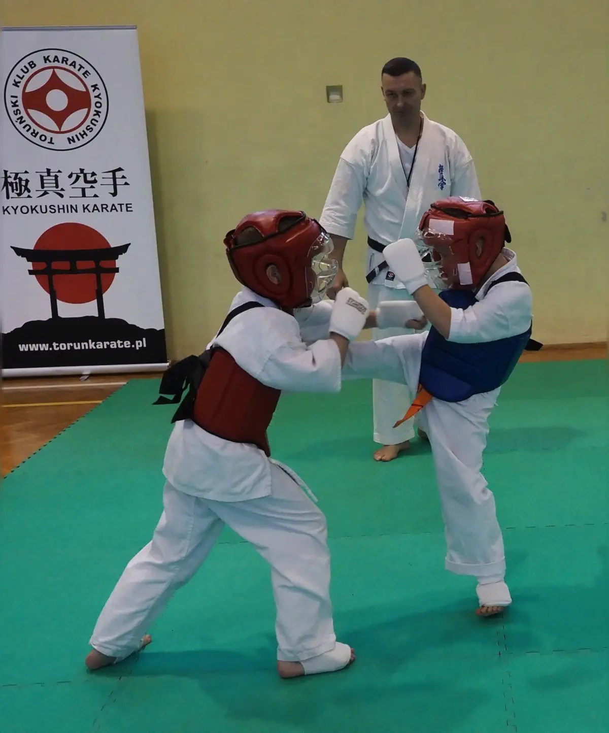 25 listopada 2023 zorganizowaliśmy Turniej Dwóch Miast. Na dwóch matach w ZS-32 przy ul. Kruczej 5a zameldowali się zawodnicy z sekcji dwóch klubów z Torunia i gospodarzy z Bydgoszczy. Zabrzmiało to wszystko bardzo poważnie, ale impreza miała charakter integracyjny. Najmłodsi ćwiczący, którzy chcieli spróbować swoich sił w kumite na zasadach turniejowych, mieli okazję to zrobić pierwszy raz właśnie tu. Była to również świetna gratka dla rodziców obserwujących umiejętności swoich pociech 🙂