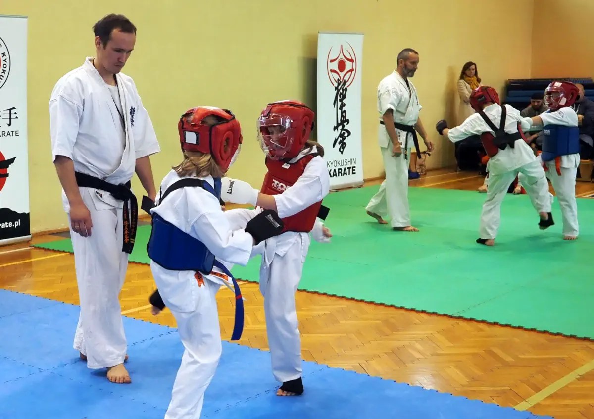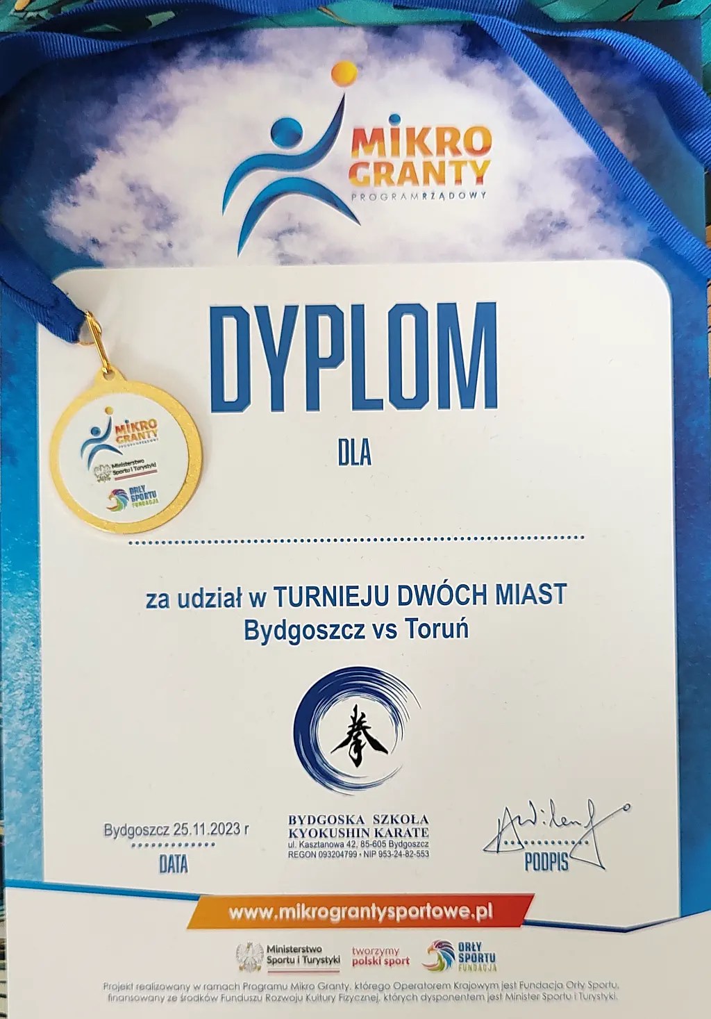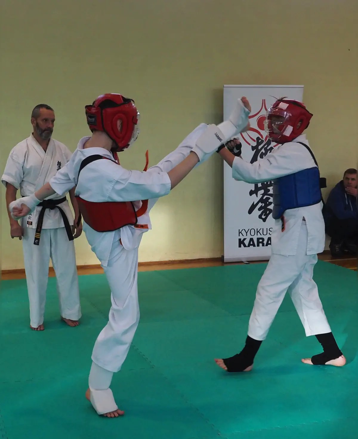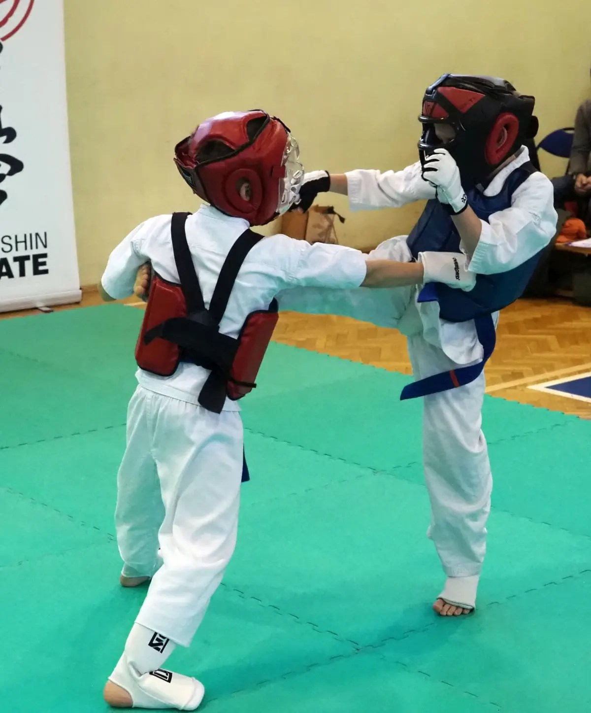 25 listopada 2023 zorganizowaliśmy Turniej Dwóch Miast. Na dwóch matach w ZS-32 przy ul. Kruczej 5a zameldowali się zawodnicy z sekcji dwóch klubów z Torunia i gospodarzy z Bydgoszczy. Zabrzmiało to wszystko bardzo poważnie, ale impreza miała charakter integracyjny. Najmłodsi ćwiczący, którzy chcieli spróbować swoich sił w kumite na zasadach turniejowych, mieli okazję to zrobić pierwszy raz właśnie tu. Była to również świetna gratka dla rodziców obserwujących umiejętności swoich pociech 🙂