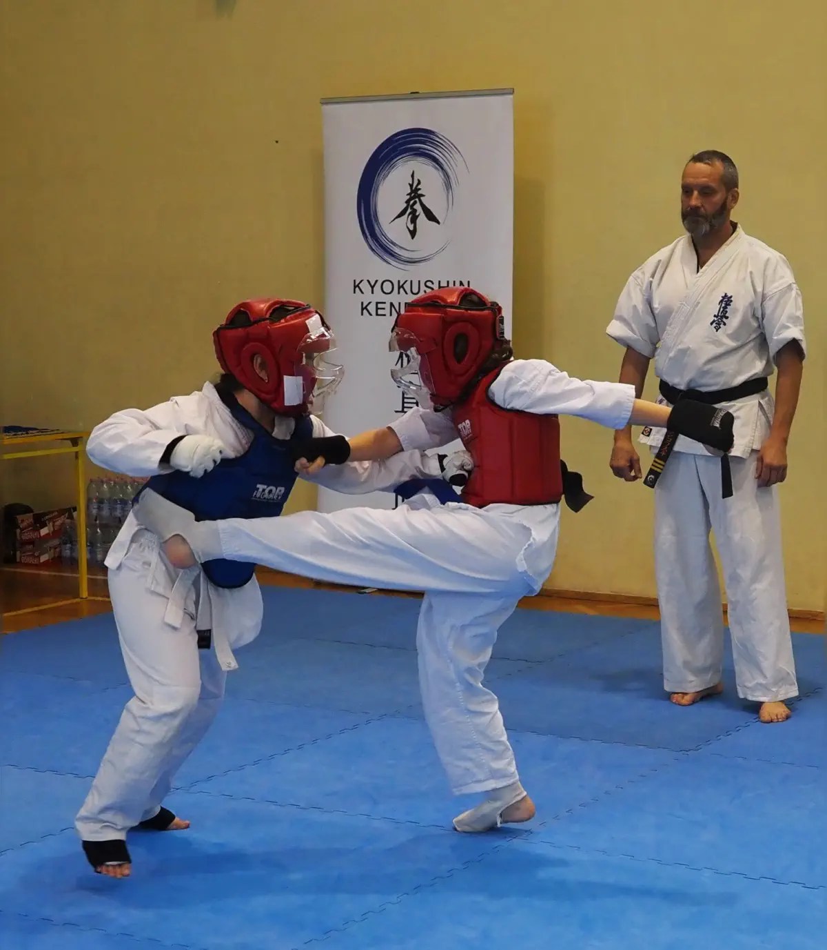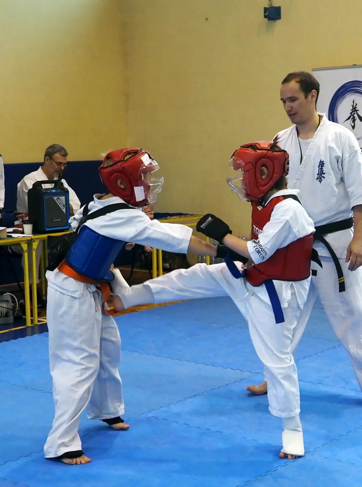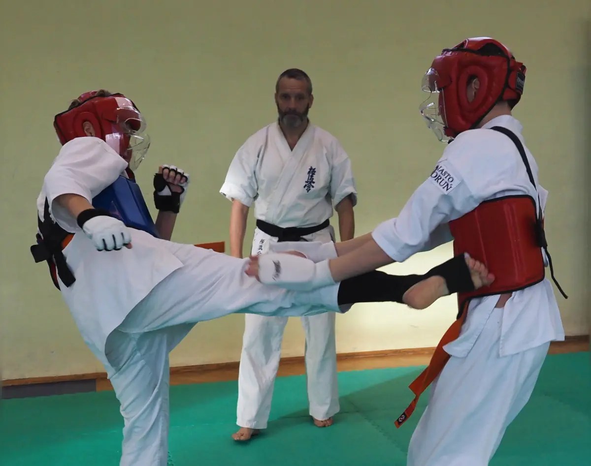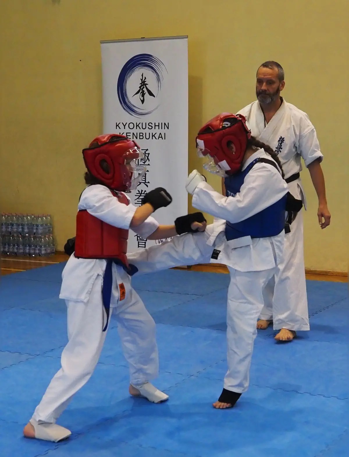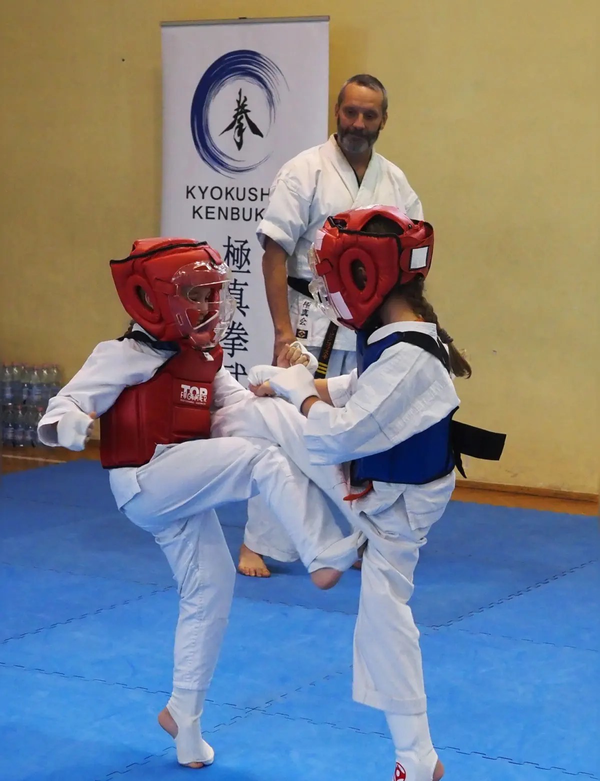 25 listopada 2023 zorganizowaliśmy Turniej Dwóch Miast. Na dwóch matach w ZS-32 przy ul. Kruczej 5a zameldowali się zawodnicy z sekcji dwóch klubów z Torunia i gospodarzy z Bydgoszczy. Zabrzmiało to wszystko bardzo poważnie, ale impreza miała charakter integracyjny. Najmłodsi ćwiczący, którzy chcieli spróbować swoich sił w kumite na zasadach turniejowych, mieli okazję to zrobić pierwszy raz właśnie tu. Była to również świetna gratka dla rodziców obserwujących umiejętności swoich pociech 🙂