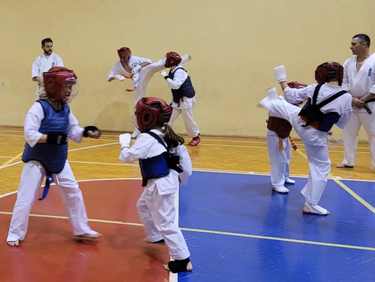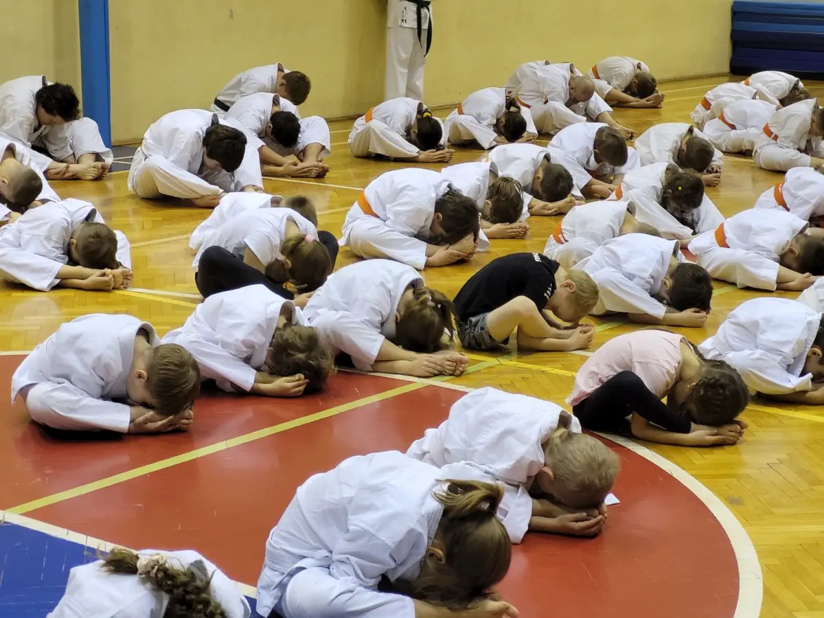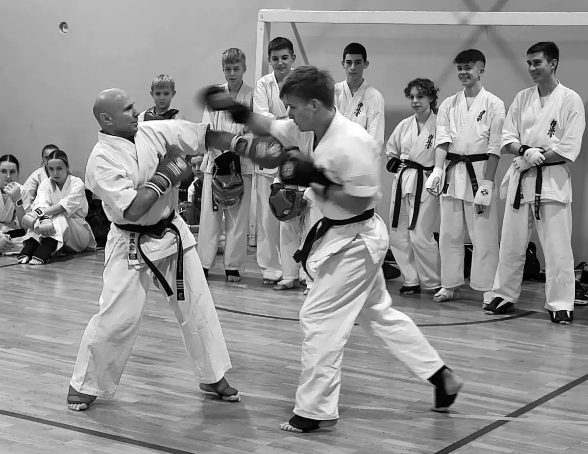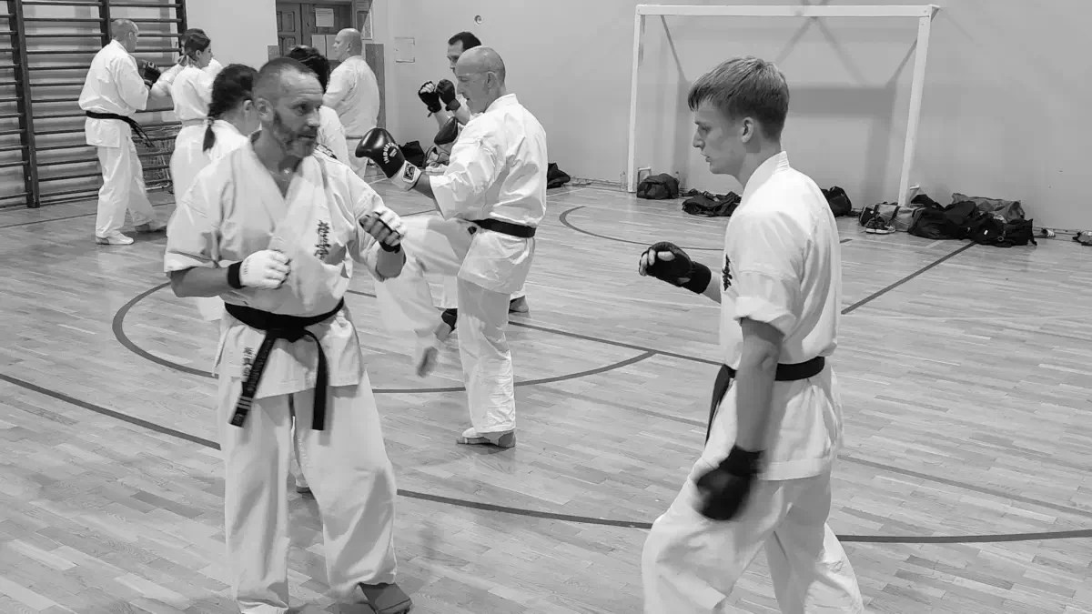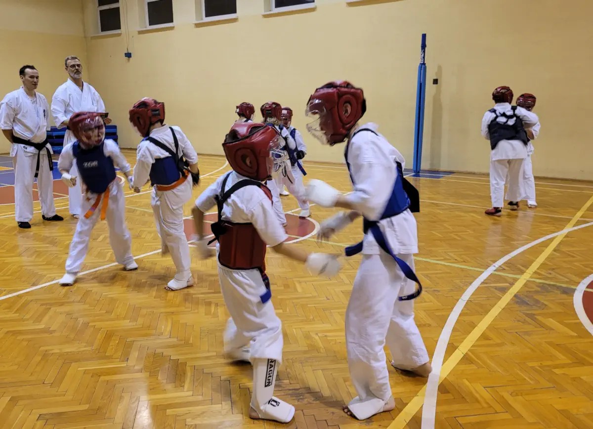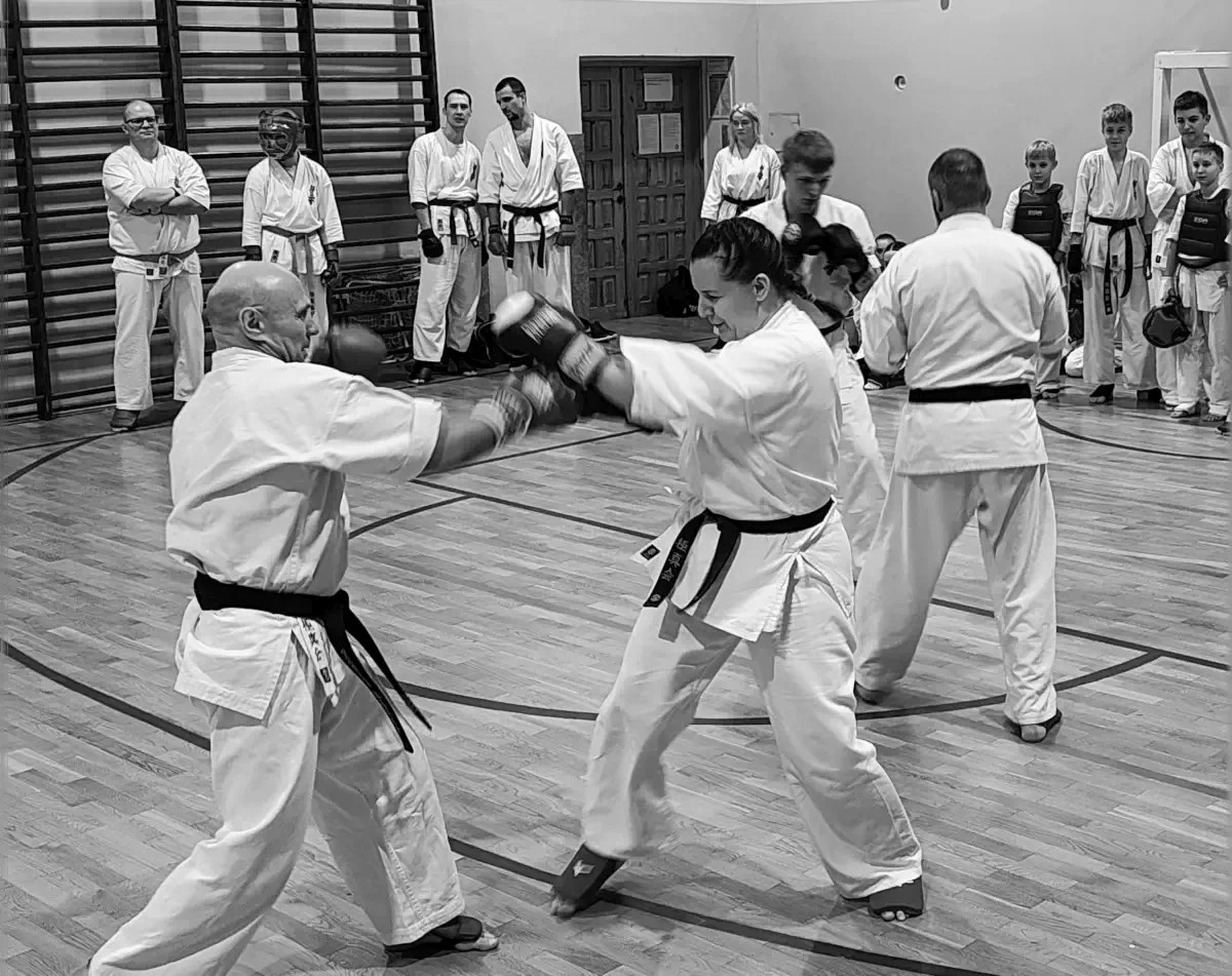 Zadania były zwięzłe, obejmujące podstawy techniczne oraz ćwiczenia w parach. Po tej części pozostała tylko druga grupa. Każdy ćwiczący w tej grupie miał możliwość zaprezentowania swoich umiejętności na wyższym poziomie. Podstawą było kata. Uczniowie zdający na niebieskie pasy uczestniczyli w kumite. W rezultacie kilka osób otrzymało promocję na dwa stopnie: