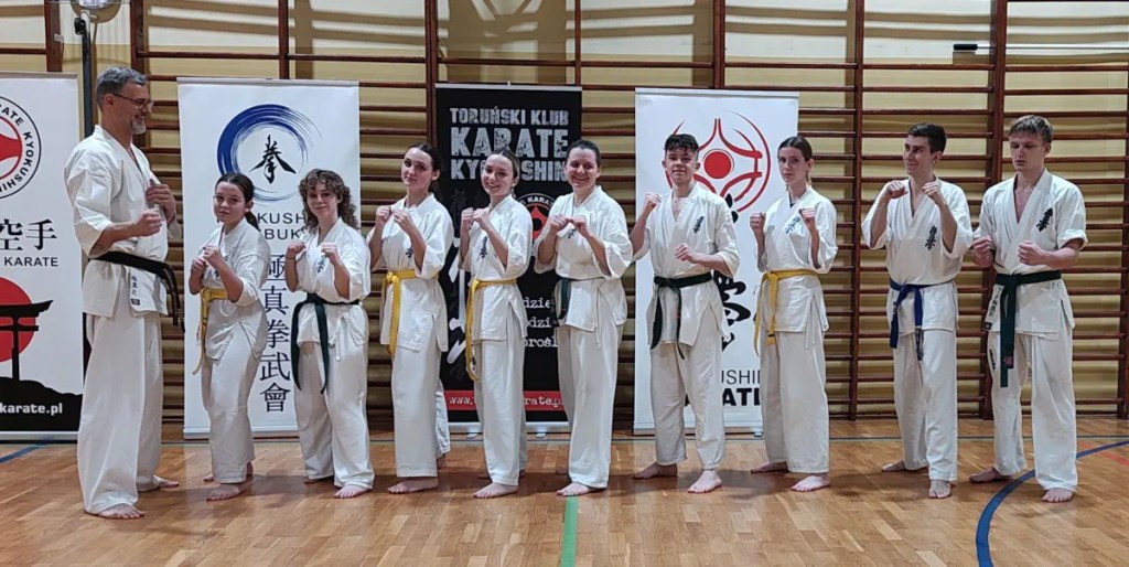 W Toruniu 16 grudnia dziewięć osób z naszego klubu zdawało egzamin. Wszyscy wypadli dobrze i uzyskali wyższe stopnie. Szczególnie gratulujemy promocji na brązowe i zielone pasy.