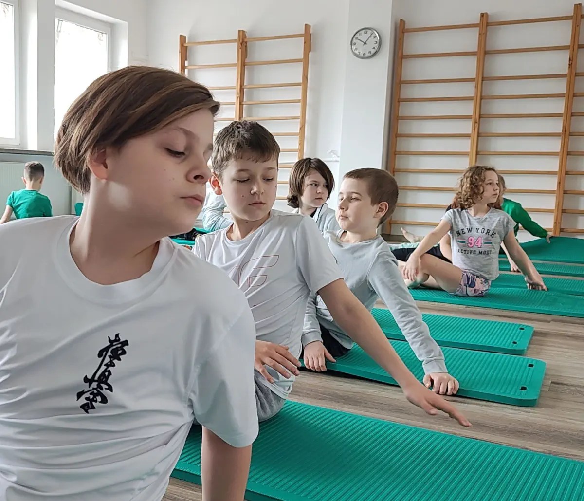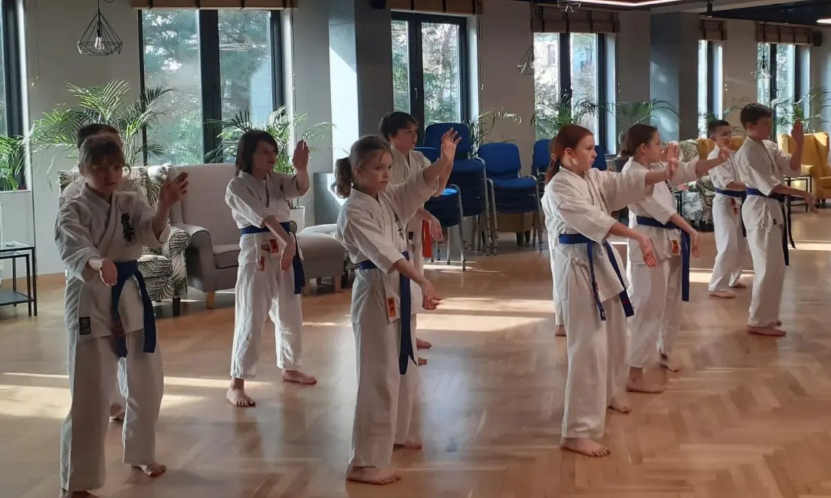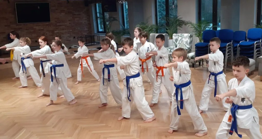 W ramach wieczornych spotkań i obejrzeliśmy film Karate Kid oraz materiały prezentujące kata nie tylko kyokushin karate i kumite – walki turniejowe juniorów. To dodatkowo motywowało wszystkich do ćwiczeń.