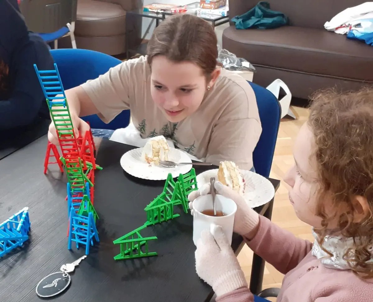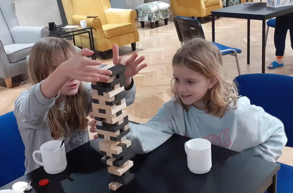 Podczas pobytu korzystanie z telefonów i innej elektroniki było ograniczone. Nikomu to jednak nie przeszkadzało, a wręcz pomagało spędzać czas z rówieśnikami. Znakomitą alternatywą okazał się wieczór gier planszowych i konkurs opowieści z mchu i paproci 😉