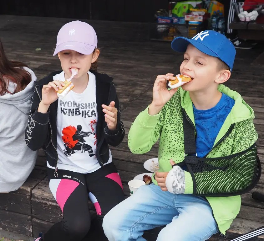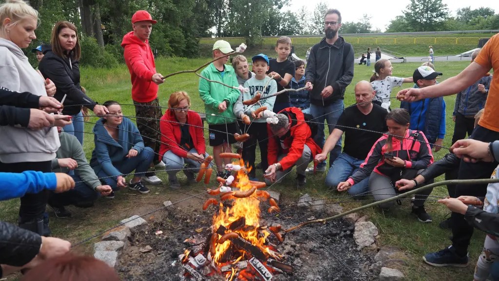 Po treningu część piknikowa – ognisko i pieczone kiełbaski, chlebek ze smalczykiem i ogórkiem, słodkie przekąski i owoce. Potem wszyscy rozbiegli się do zajęć w podgrupach 🙂 – a to gra w piłkę, a to plac zabaw, a to jazda na hulajnodze…