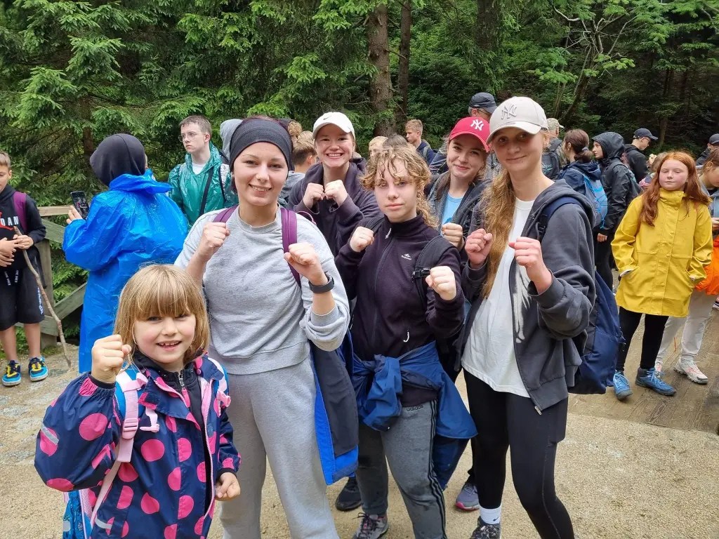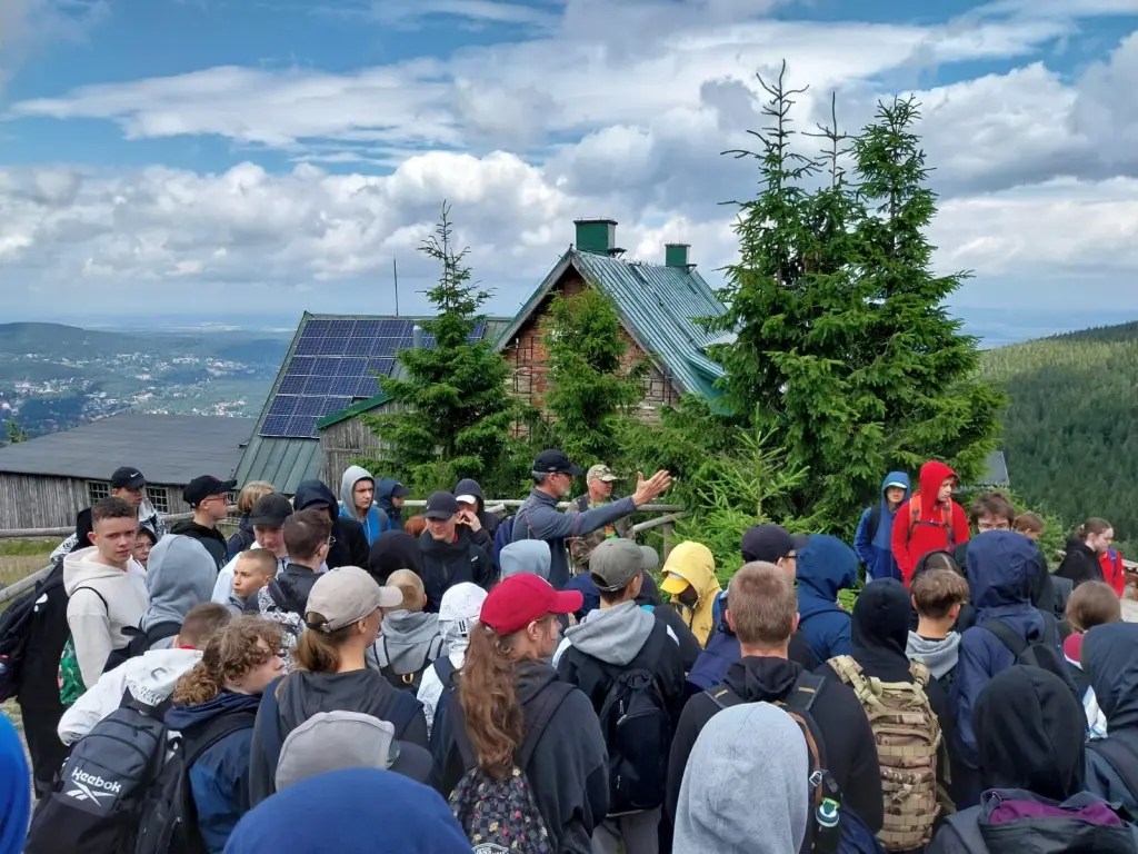 W ramach wycieczki cały obóz pojechał koleją do Liberca w Czechach. Tam zwiedziliśmy rynek miasta, a potem przeszliśmy do centrum rozrywki Babylon, gdzie większość uczestników skorzystała z atrakcyjnego aquaparku. Będąc w górach i nie pójść na szlak? Nie do wyobrażenia 🙂 W tym roku zrobiliśmy trzy trasy. Każda z nich była inna i miała swój stopień trudności. Towarzyszyła nam dobra pogoda na górskie wycieczki, a widoki dodawały nam sił. Charakterystyczne miejsca, w których byliśmy: Krucze Skały, wodospad Kamieńczyka, schronisko pod Łabskim Szczytem, źródła rzeki Łaba i Vosecka bouda w Czechach, schronisko na Szrenicy, kolejka linowa do Szklarskiej Poręby, Sowie Skały, złoty widok, wodospad Szklarski i schronisko Kochanówka, Chata Walońska. Jeżeli ktoś jest ciekawy, jakimi szklakami maszerowaliśmy, to spróbujcie zapisać te miejsca i sami powędrujcie 🙂