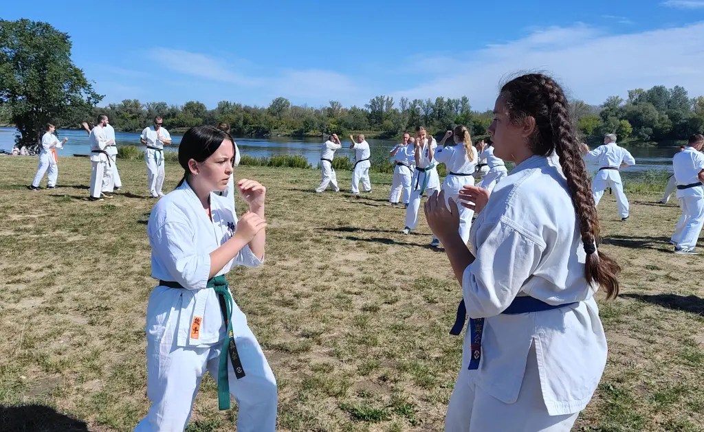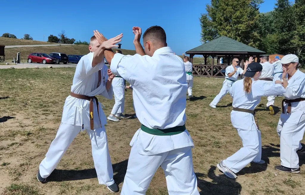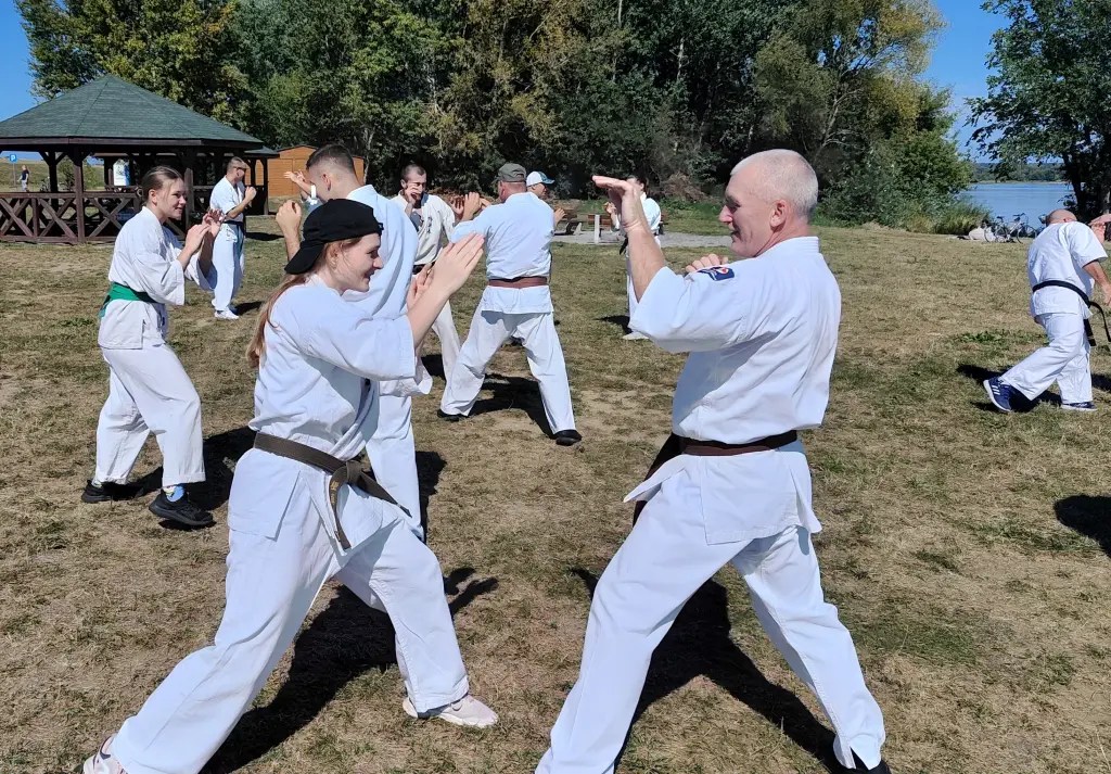 Ćwiczyliśmy technikę karate i jej zastosowanie w walce, ale bez użycia sprzętu ochronnego. Towarzyszyły nam piękne okoliczności przyrody, które dodatkowo dodawały nam energii to ćwiczeń.