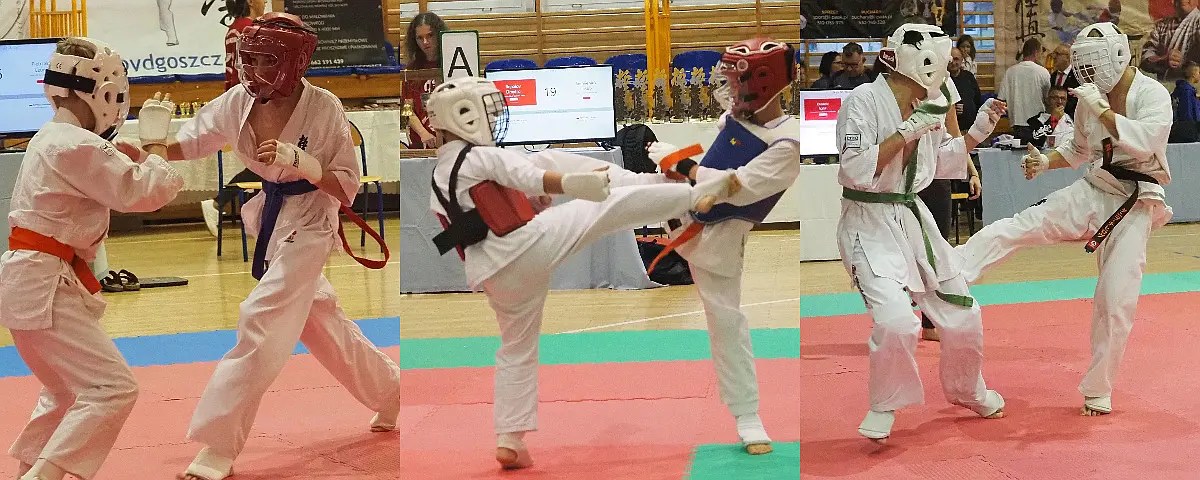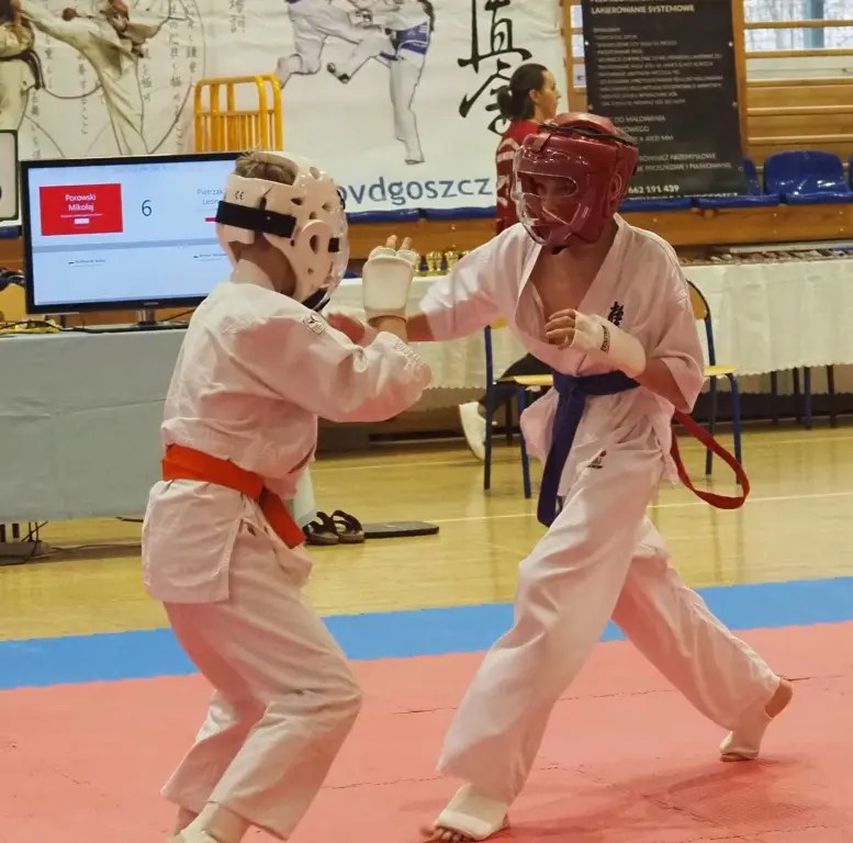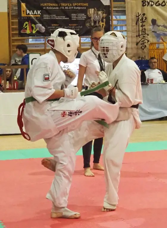 W konkurencji kumite wziął udział cały skład naszej ekipy. Każdy starał się jak najlepiej zaprezentować swoje umiejętności. Walki eliminacyjne okazały się trudne do przebycia dla czwórki naszych zawodników czyli Mikołaja Porowskiego, Aleksandra Orzechowskiego, Natalii Sokowskiej i debiutującego w zawodach wyżej rangi Jakuba Ostrowskiego. Pozostała trójka wywalczyła miejsca medalowe.