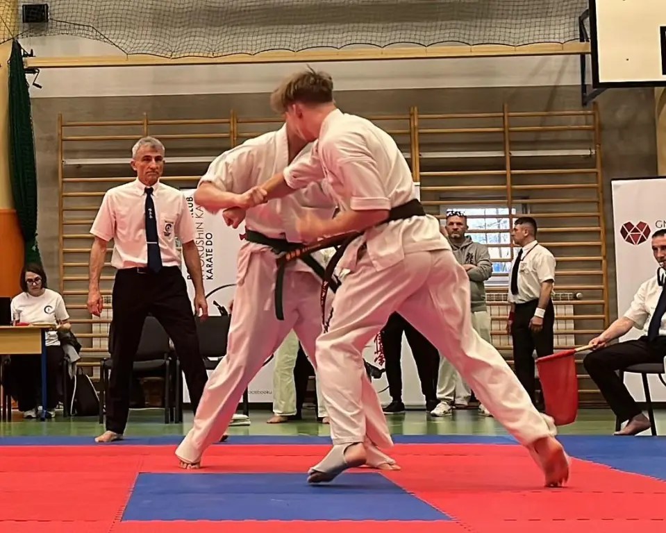 Bydgoską Szkołę Kyokushin Karate reprezentował Danylo Chychyrov, który walczył w kategorii seniorów -80kg. W eliminacjach wylosował wolny los, co dało mu dodatkową okazję do naładowania energii przed nadchodzącymi starciami. Potem zmierzył się z zawodnikiem z Wieruszowa. Walka była zacięta od samego początku, a obaj zawodnicy wykazywali się dużym skupieniem. W pewnym momencie nasz zawodnik przyśpieszył akcję i celnym trafieniem powalił przeciwnika co dało mu zwycięstwo.