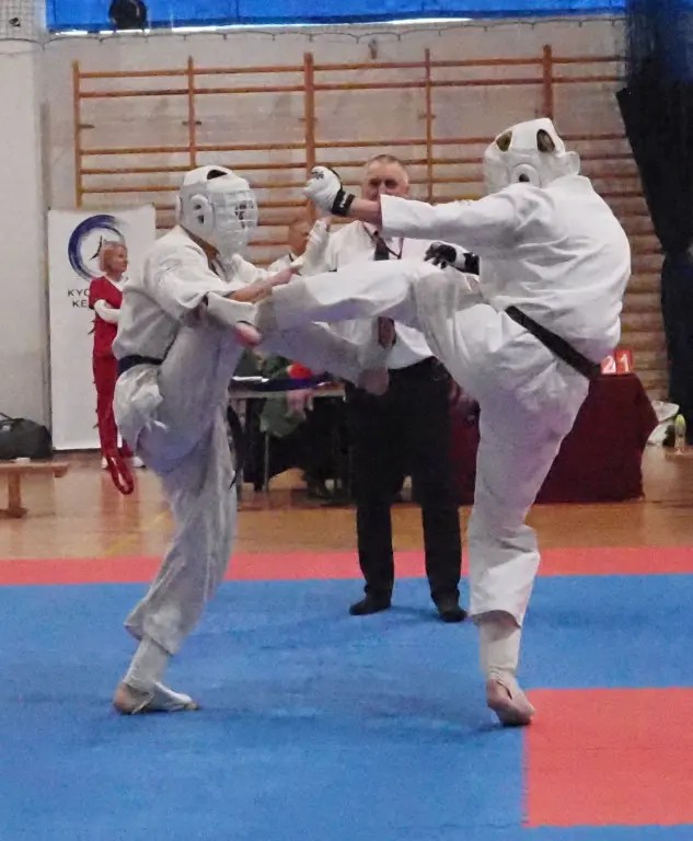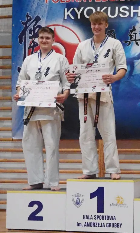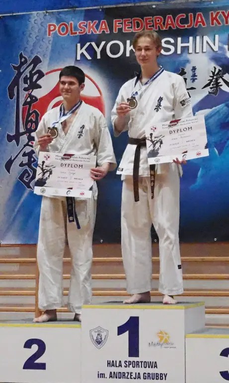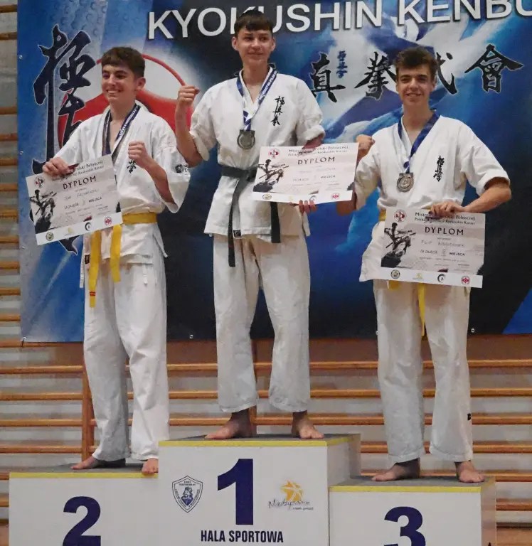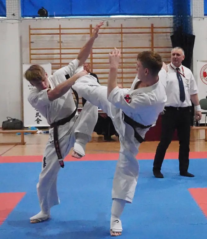 W kumite udział wzięła czwórka zawodników z naszego Klubu. Filip Wasiucionek i Vadim Didyk, dla których był to debiut w takiej rywalizacji walczyli w kategorii juniorów. Pojedynki były dla nich trudne, ale przyniosły też ogromne doświadczenie i cenną ocenę swoich możliwości. Filip Wasiucionek zajął 3 miejsce w U-16 -70kg, co jest dużym osiągnięciem, biorąc pod uwagę jego początkowy staż w tym sporcie, a Vadim Didyk zdobył 2 miejsce w U-18 +75kg, prezentując niezwykłą determinację i wolę walki.