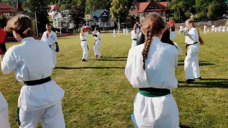 Dzieci trenują wspólnie jako grupa ucząc się synchronizacji i współdziałania z innymi. Innym razem rywalizują między sobą, co z kolei pobudza ich do samodzielności i kreatywności. W czasie Letniej Szkoły Karate dzieci mają okazję spotkać kolegów z innych klubów. Jest to okazja do wymiany spostrzeżeń między młodymi sportowcami, ale również do nawiązania nowych przyjaźni, które potrafią przetrwać długie lata. Zajęcia odbywają się w salach sportowych oraz w plenerze… zarówno w dzień, jak i w nocy 😉