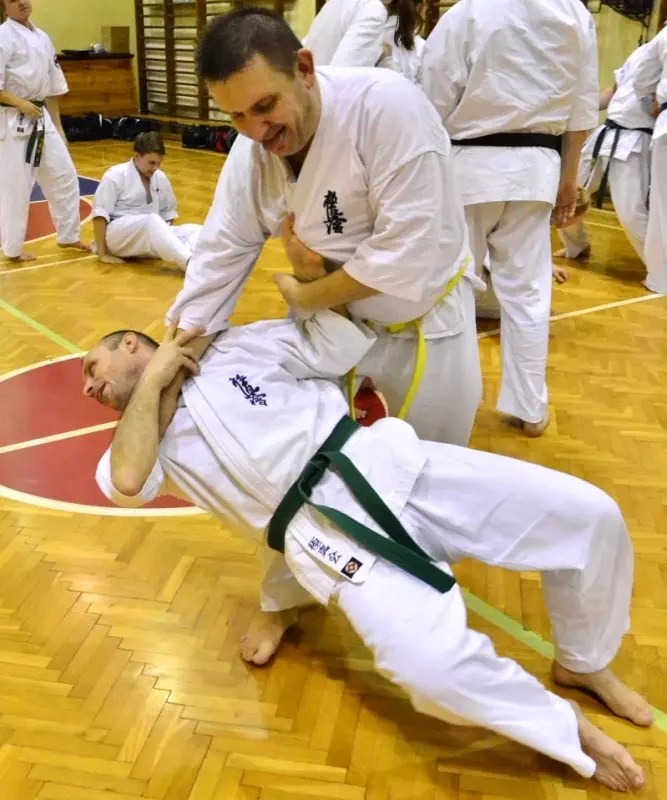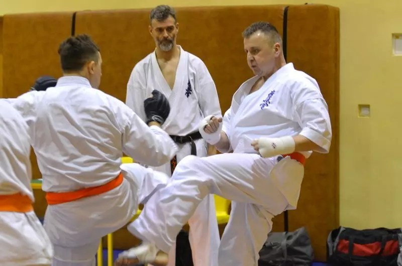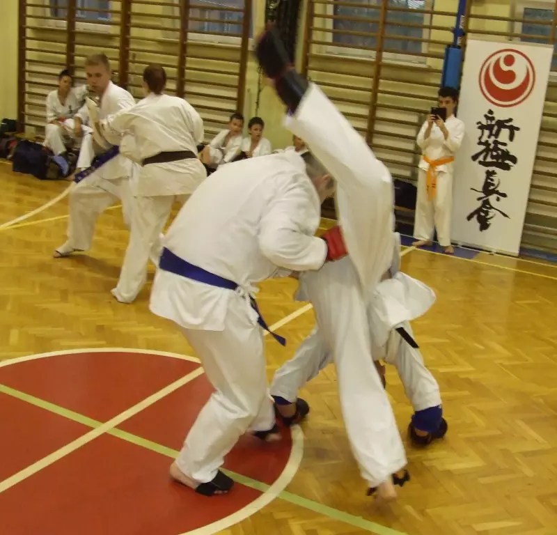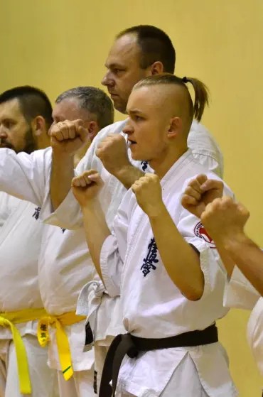 Na zajęciach tej grupy zwracamy uwagę również na bardziej zaawansowane aspekty treningu, jak m.in. zarządzanie wydatkowaną energią w trakcie walki czy dostosowywanie rytmu oddechu do wykonywanych ruchów. Ważnym elementem zajęć jest taktyka walki sportowej, dla której staramy się znajdować zastosowanie również w samoobronie. Ponadto trenujemy typowe elementy samoobrony takie jak uwolnienia z chwytów, czy obrona przed atakiem z użyciem niebezpiecznego narzędzia. Od ćwiczących w tej grupie wymaga się sporego zaangażowania wolicjonalnego i zachęca się do kreatywnego wykorzystywania wcześniej zdobytej wiedzy. Osoby te mogą startować w zawodach oraz uczestniczyć w obozach i seminariach organizowanych przez nasz klub i Polską Federację Kyokushin Karate.