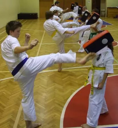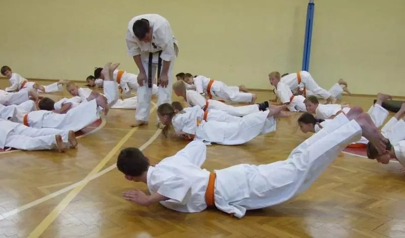 U ćwiczących rozwijamy ogólną sprawność ruchową, nieodzowną częścią treningu są ćwiczenia gimnastyczne i ogólnorozwojowe. Pracujemy również nad siłą, szybkością i kondycją, które są potrzebne na dalszym etapie treningu wszelkich sztuk i sportów walki. Główną uwagę skupiamy na technice karate ucząc podstaw kumite (walki) i kata (układów formalnych).