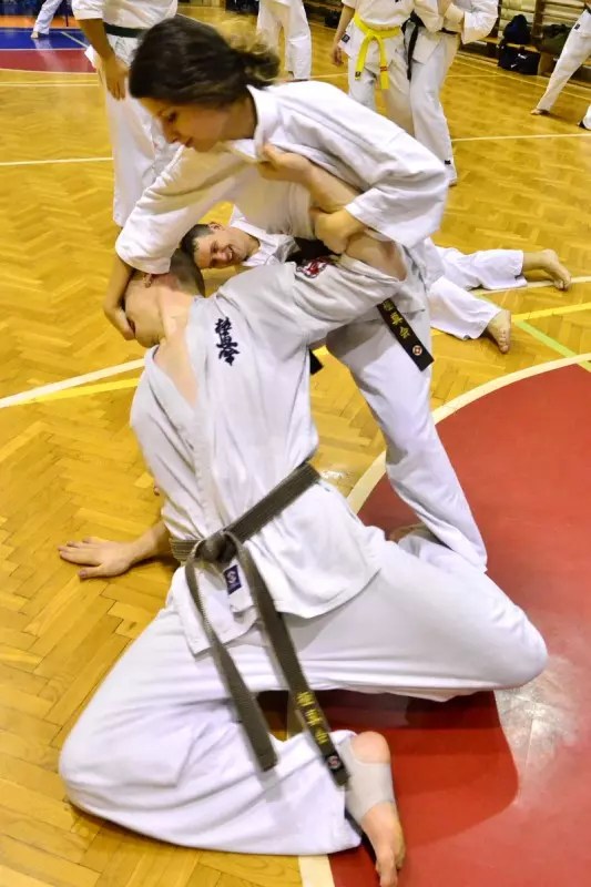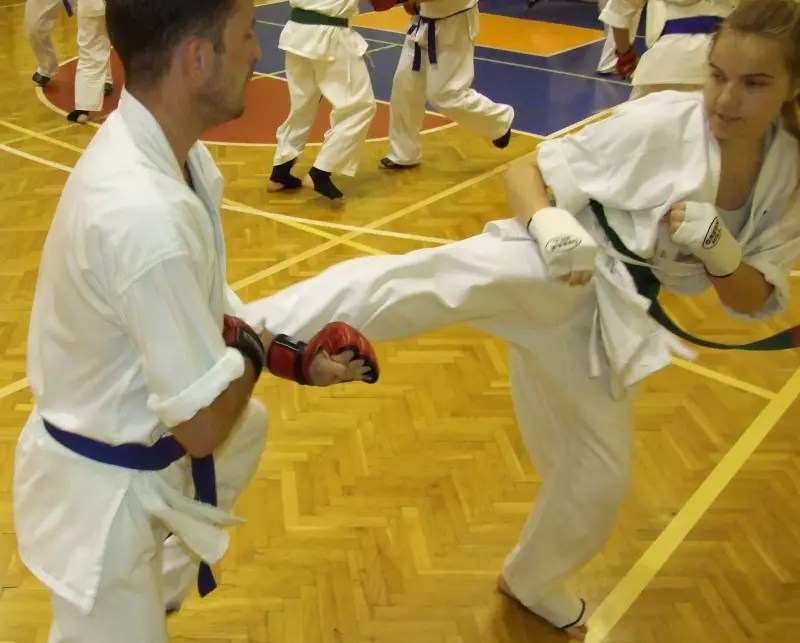 Rozwijamy siłę i szybkość uderzeń, kopnięć i bloków zwracając uwagę na tempo i dynamikę ich wykonania. Ćwiczący doskonalą metody poruszania się w walce z uwzględnieniem wyczucia dystansu, poznają sposoby stosowania zejść, ugięć i uników oraz nabywają umiejętności płynnego łączenia ich z technikami obrony i ataku.